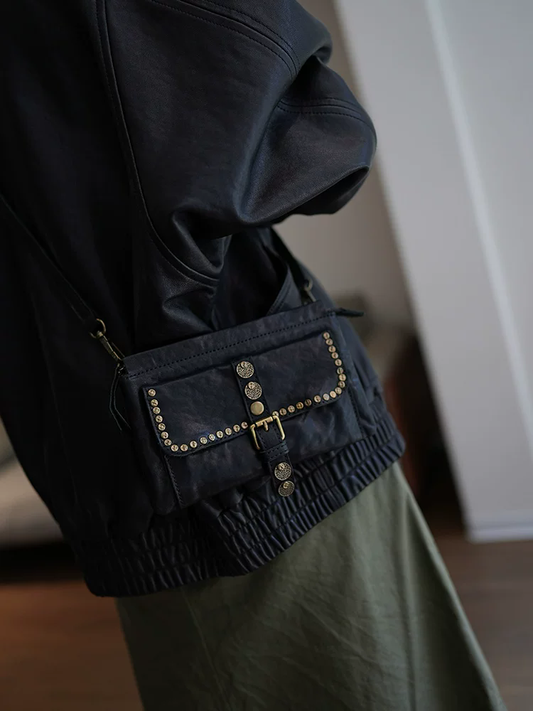 李記 | 原創手工真皮 | 復古高級~手工鉚釘斜背包ms22903號