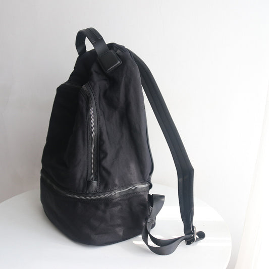 李記 | 原創手工真皮 | 可放筆電和檔案包~輕便布配牛皮雙肩包s240號