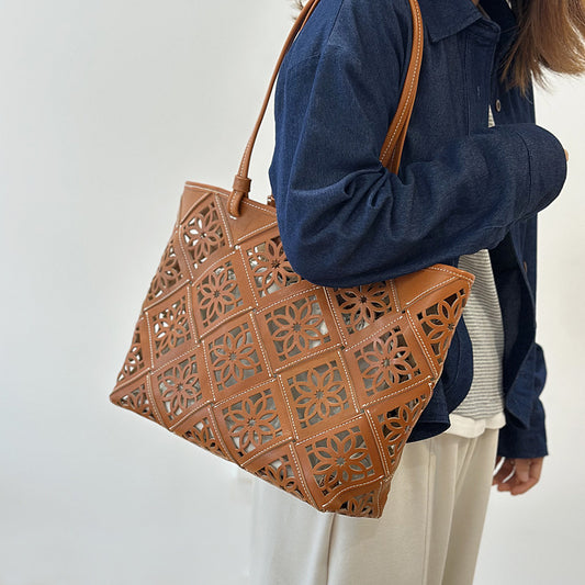 李記 | 原創手工真皮 | 美拉德氛圍感の鏤空花朵設計大容量通勤包26019號