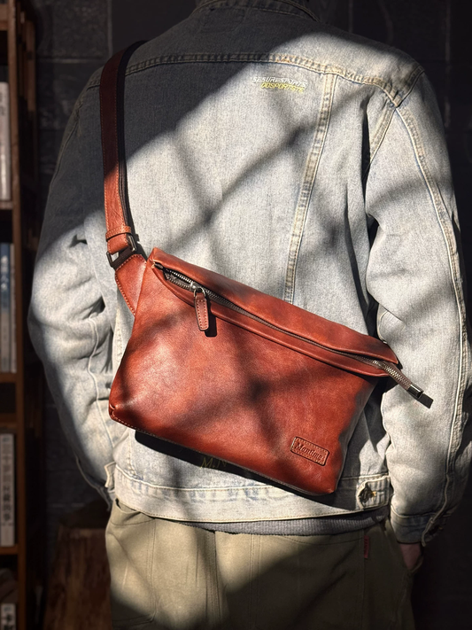 李記 | 原創手工真皮 | 美式復古感拉滿の斜唄包ms5111號