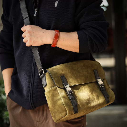 李記 | 原創手工真皮 | 終極質感!中古磨砂皮斜唄包A8324號