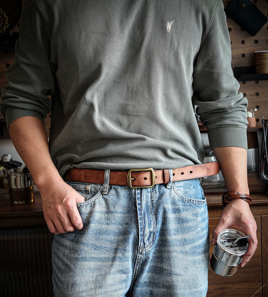 李記 | 原創手工真皮 | 做舊黃銅扣~低調不撞款の植鞣革皮帶dy9323號