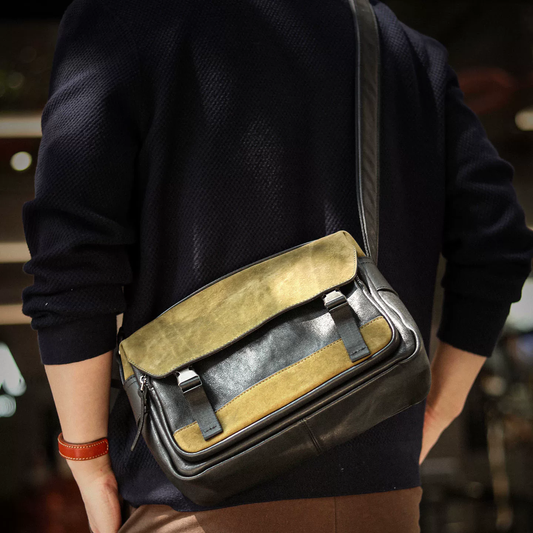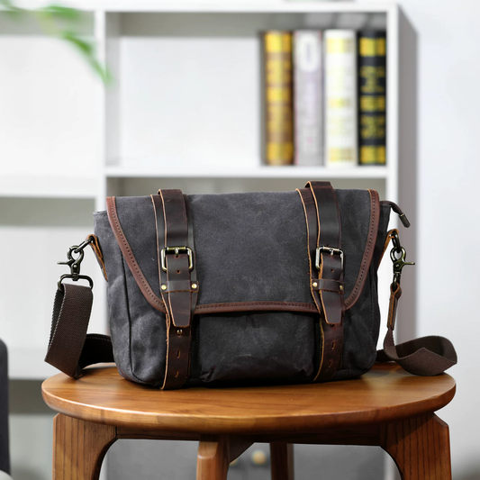 李記 | 原創手工真皮 | 油蠟防水帆布配牛皮の郵差包jc205號