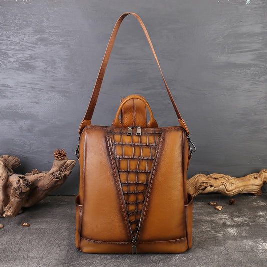 李記 | 原創手工真皮 | 復古植鞣皮の個性壓紋後背包zl8114號