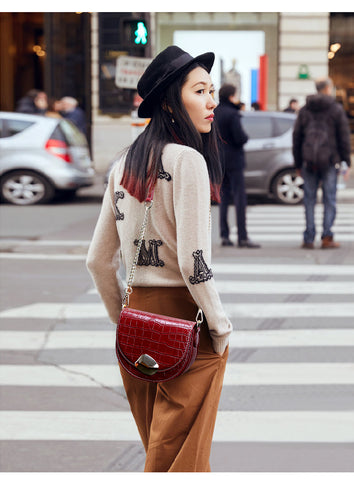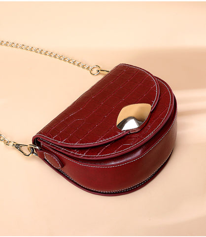 Li Ji | Original leather handmade | Crocodile pattern small fragrant chain saddle bag No. 10915