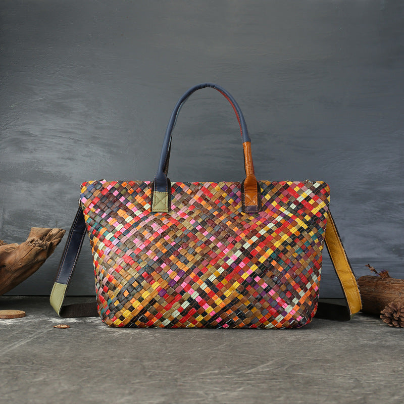 李記 | 原創手工真皮 | 彩色編織の輕奢托特包3885號