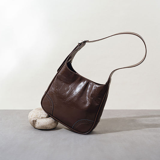 Li Ji | Original handmade genuine leather | Lazy style soft leather large capacity armpit bag No. L2402