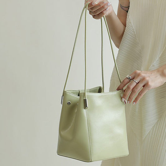 Li Ji | Original handmade leather | Korean style simple first-layer cowhide drawstring bucket bag No. 9697