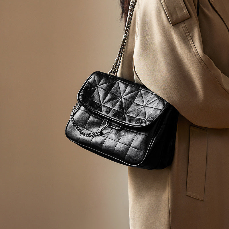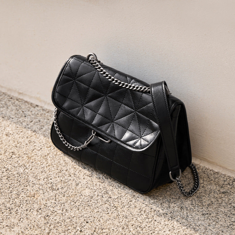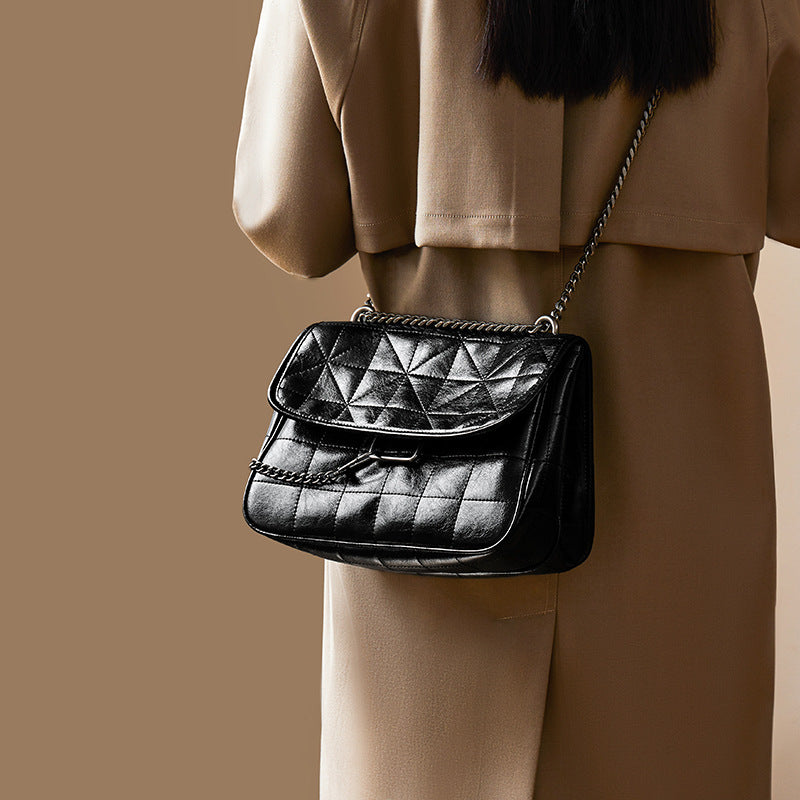 優雅菱格鏈條包,簡約而不簡單的萎格鏈條包,立體有型,時尚的毫不費力,包身定型設計,使包包飽滿有立體感,恰到好處的內裡滿足你的日常需求,包包配寘了五金鏈條肩帶,可單肩、斜挎,輕鬆切換多種造型、讓每一次出行更加出彩