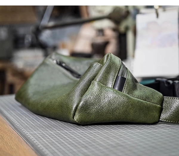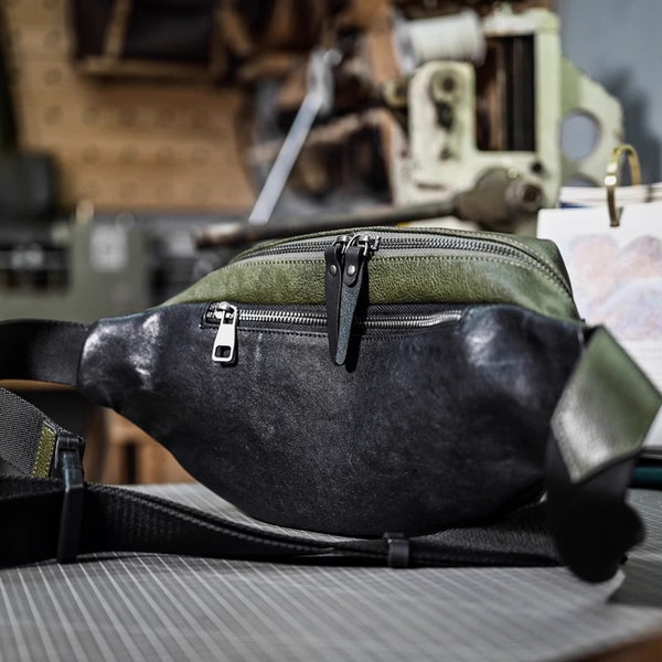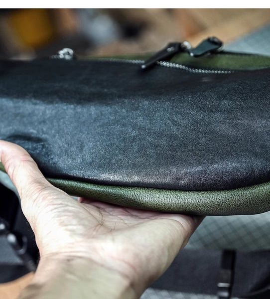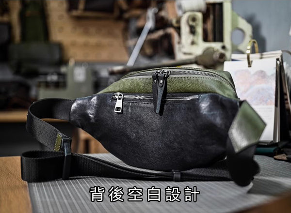 Li Ji | Original handmade | Japanese style simple first-layer cowhide chest bag/waist bag/cross-shoulder bag No. 20507