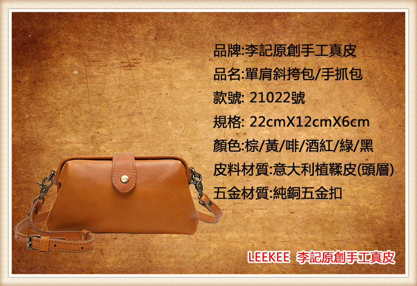 Brand: LEEKEE Original handmade genuine leather Product name: Shoulder crossbody bag/clutch bag Style number: No. 21022 Specifications: 22cmX12cmX6cm