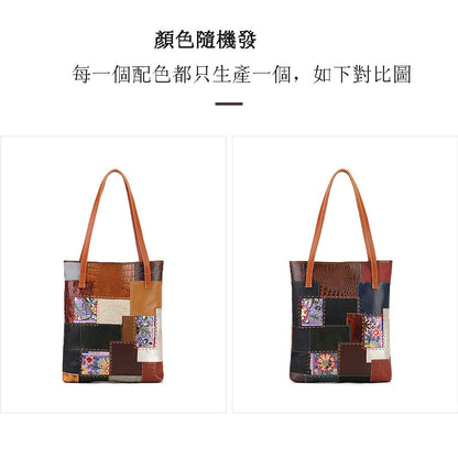 李記 | 原創手工真皮 | 頭層牛革の拼接撞色簡約托特包1972號