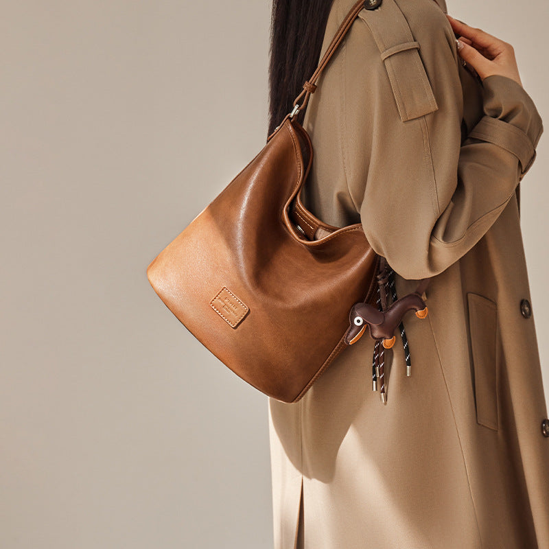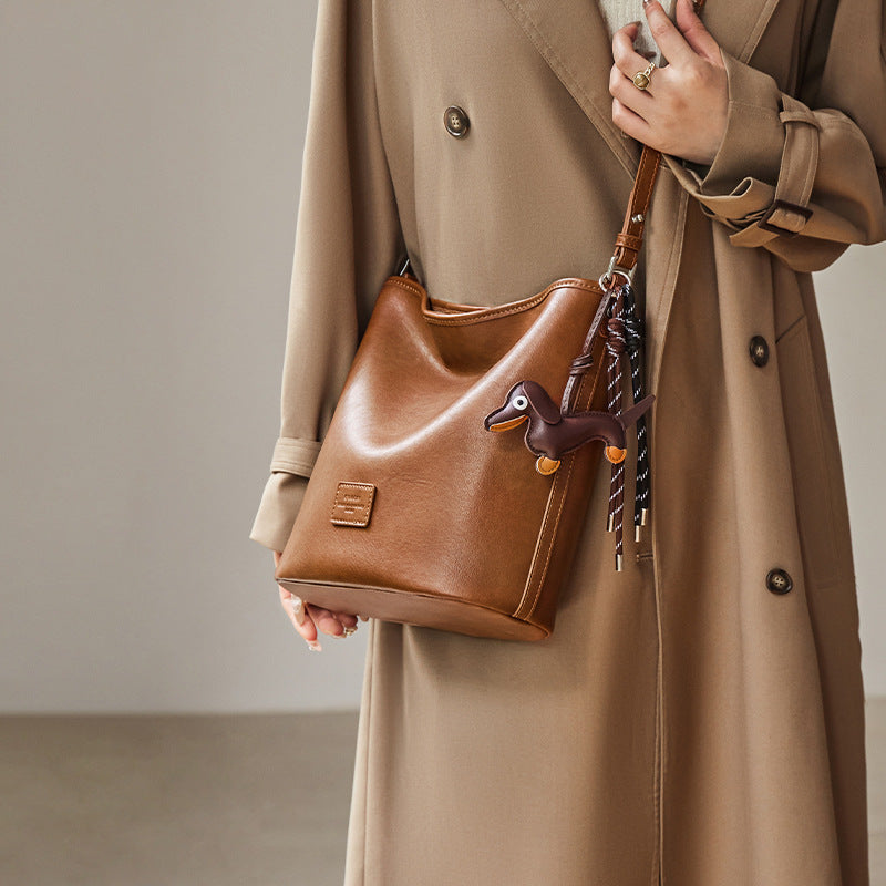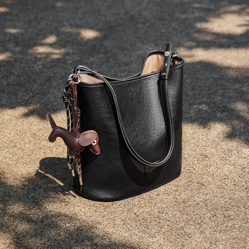 這是一款時尚簡約水桶包,兼具氣質和實用的包包,盡顯女性優雅氣質,包身立體有型,背起來立刻提升時髦度,可單肩、斜挎,更多造型等你來解鎖,時尚出街,恰到好處的內裡,滿足你的日常需求,輕鬆駕馭多種場合,給日常的搭配帶出不一樣的好品味