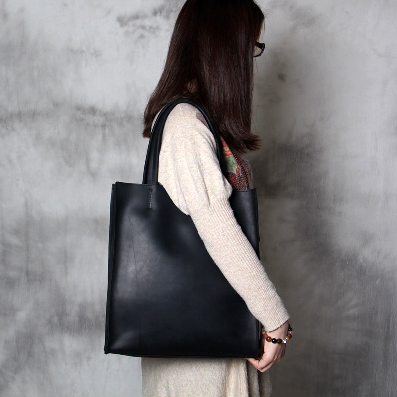 李記 | 原創真皮手工 | 男女通用,瘋馬皮豎款手提購物包 669號