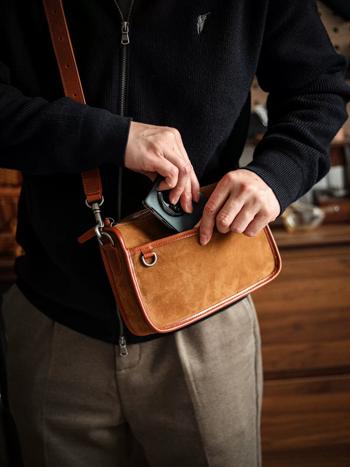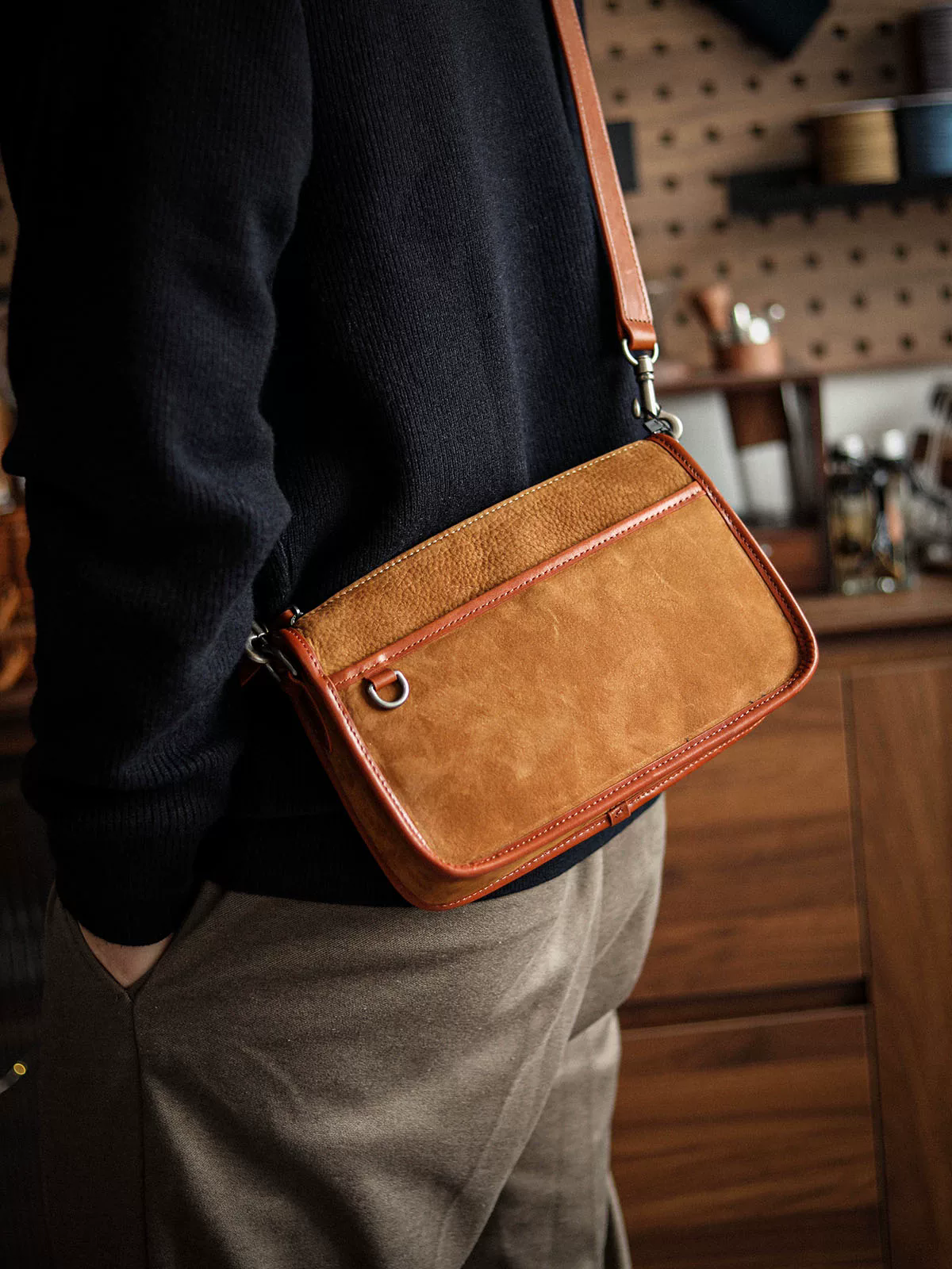 李記 | 原創手工真皮 | 告別廉價感の磨砂皮斜唄包A6864號