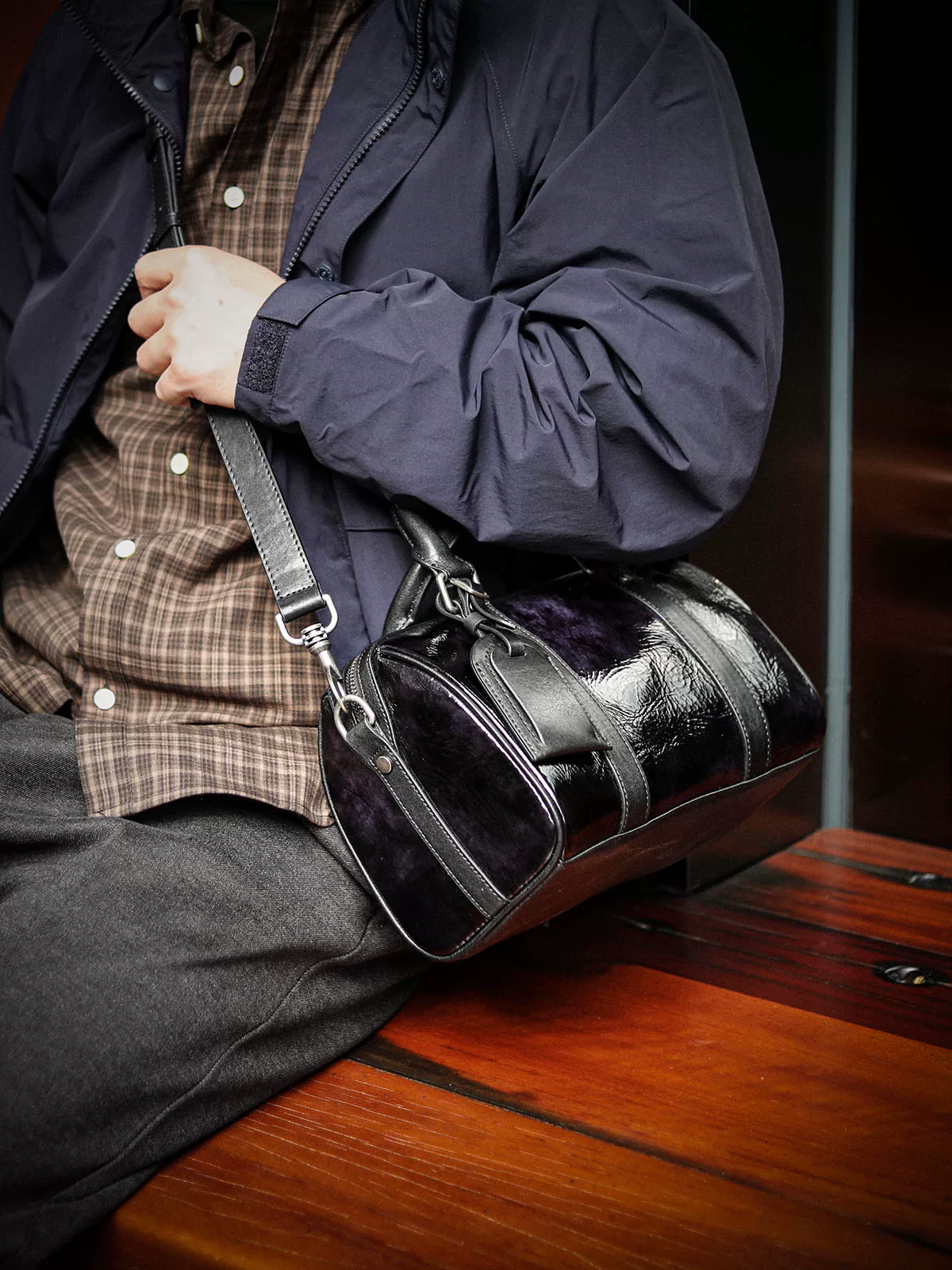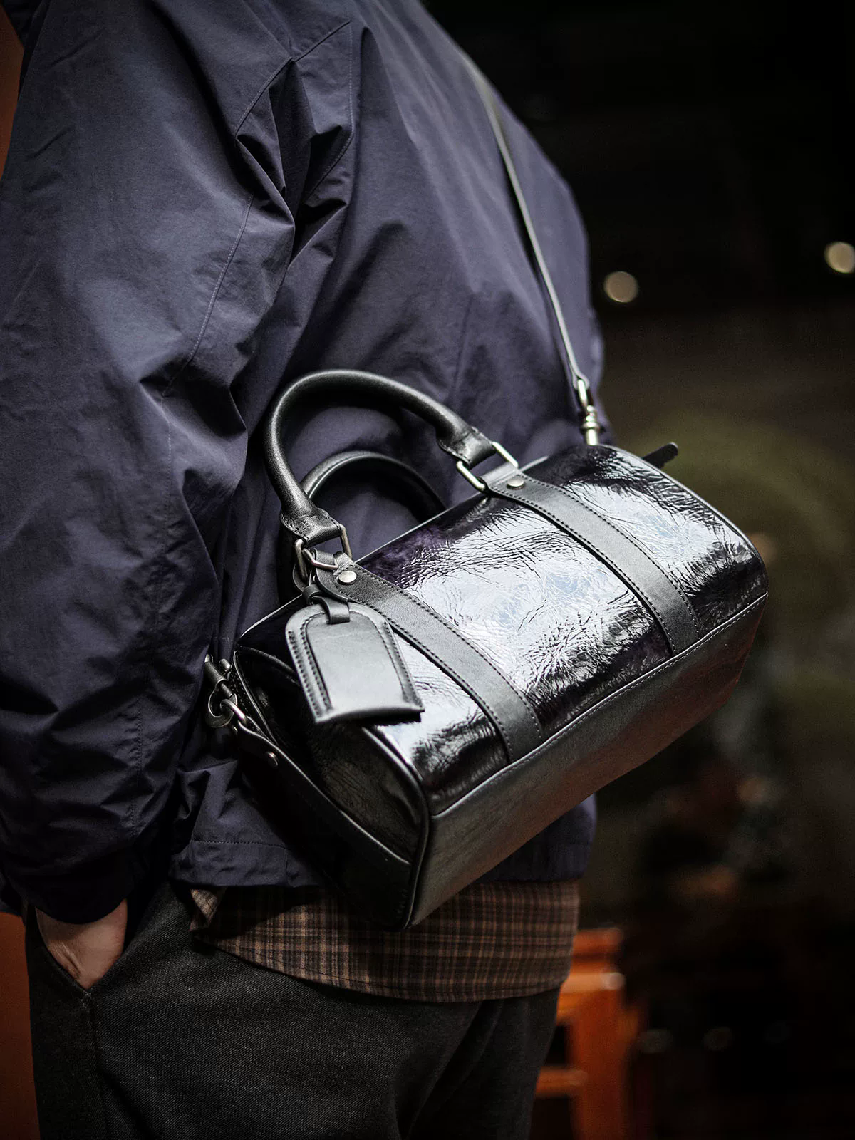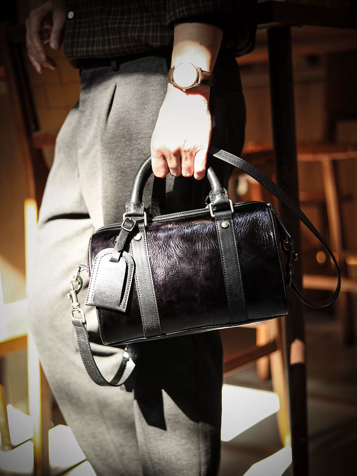 Italy/義大利馬油皮(伯爵漸變紫黑)從深邃幽深的暗黑過渡到變換莫測的深紫,馬油皮把色彩美學,演繹得淋漓盡致,皮面自帶高光濾鏡,揉捏皮面會呈現獨特的自然褶皺紋理,富有藝術感和收藏價值,這種皮在外觀、觸感和審美價值上都極具獨特性和辨識度,是不可多得的稀有皮料