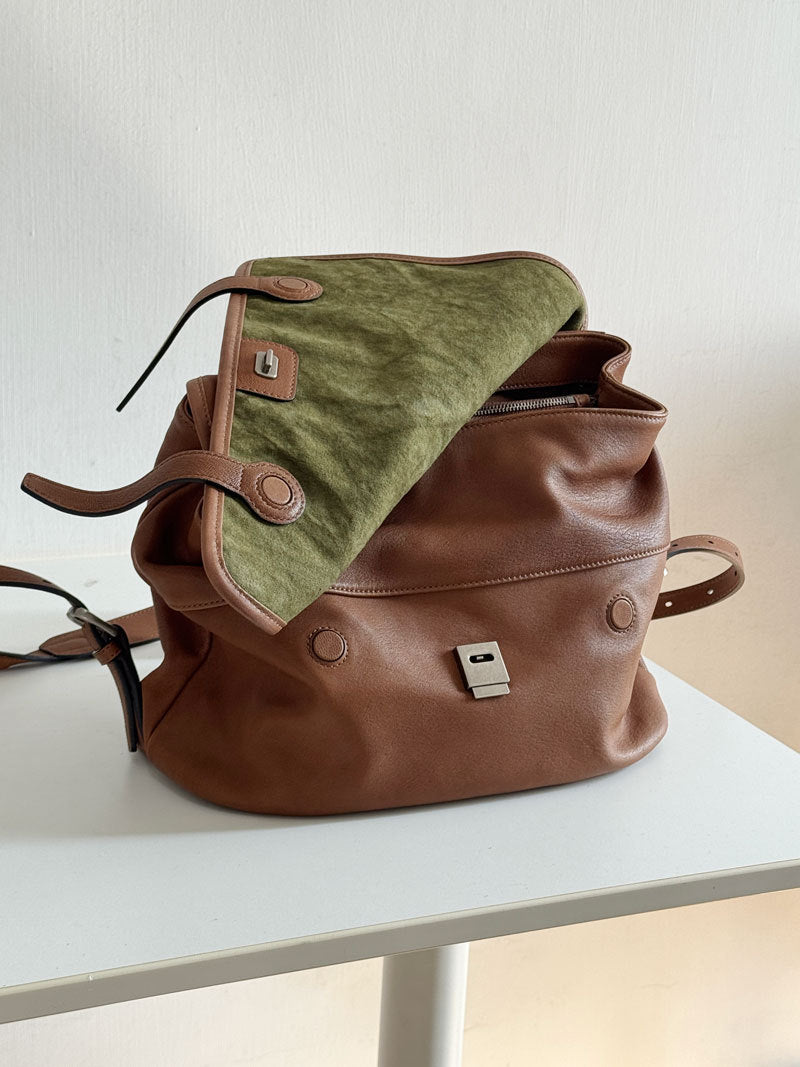 李記 | 原創手工真皮 | 皮料糯糯嘰嘰~慵懶鬆弛又能裝~後背包B251號