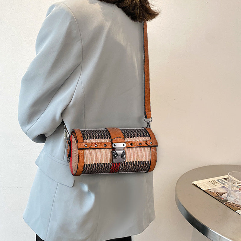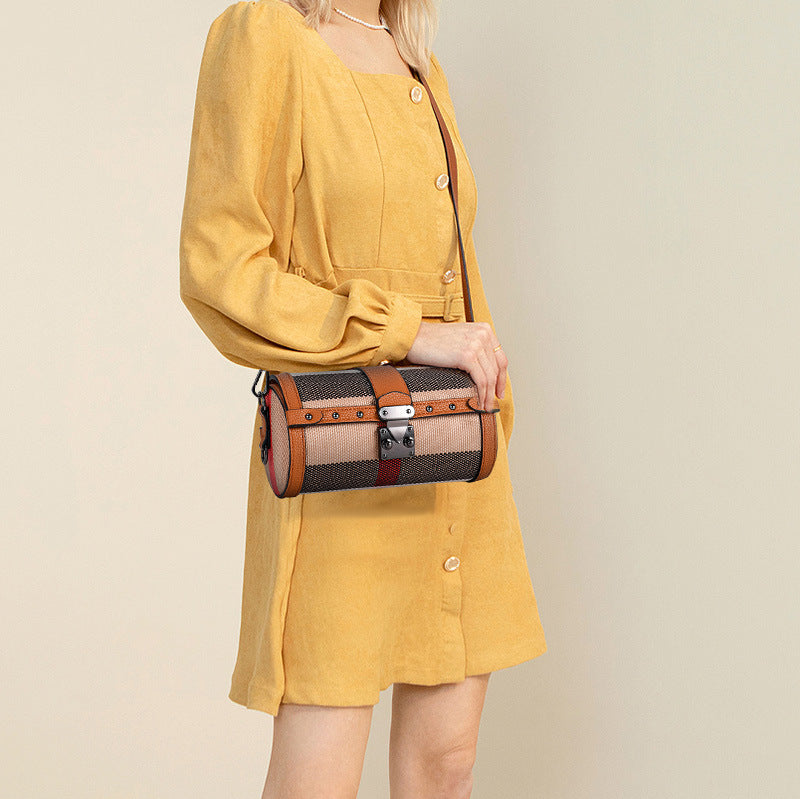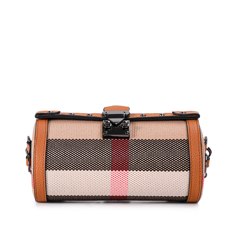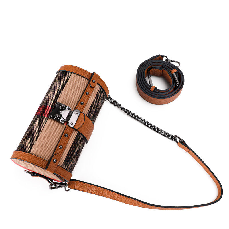 李記 | 原創手工真皮 | 復古格子で撞色い圓筒包F0318號