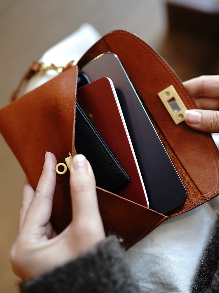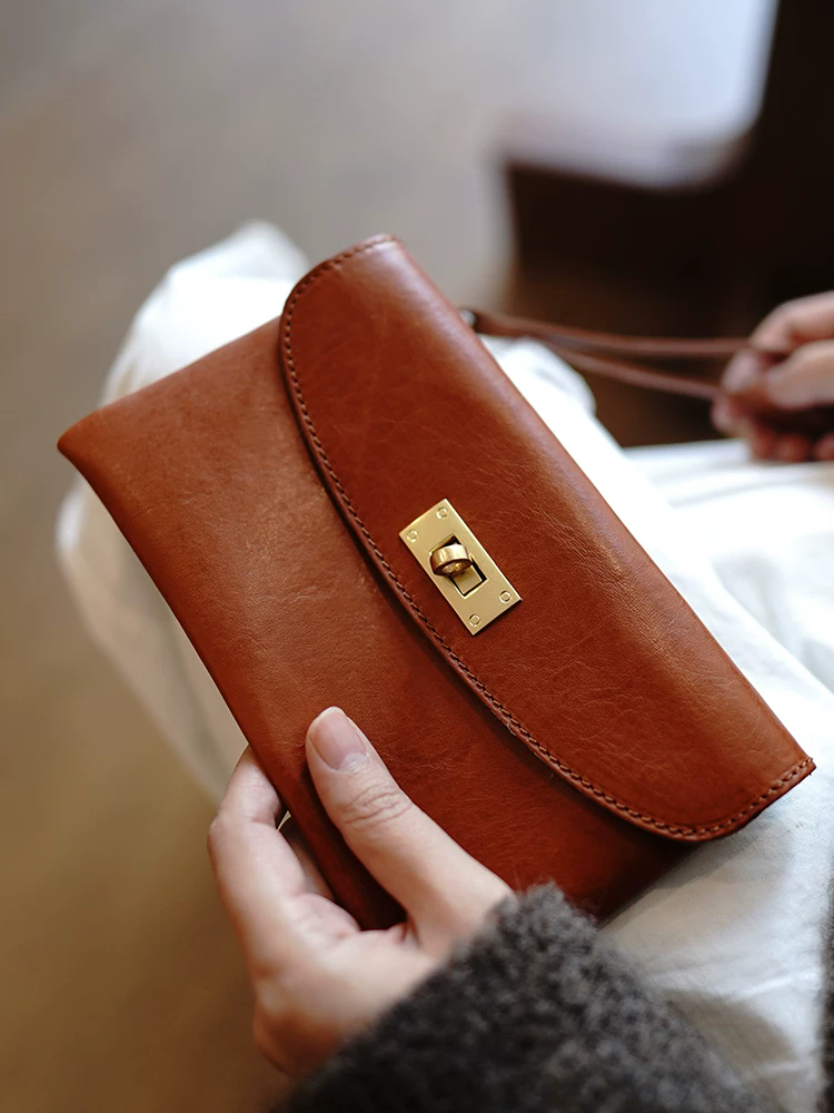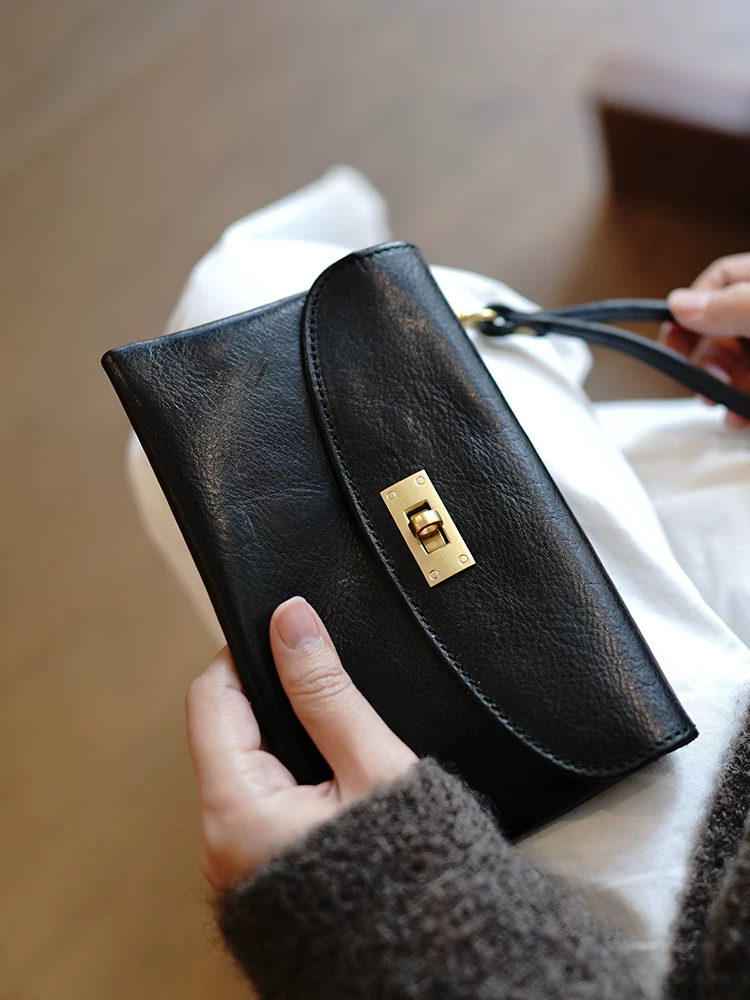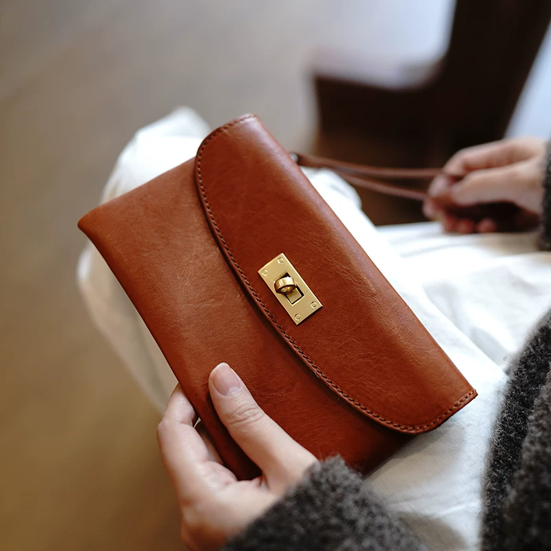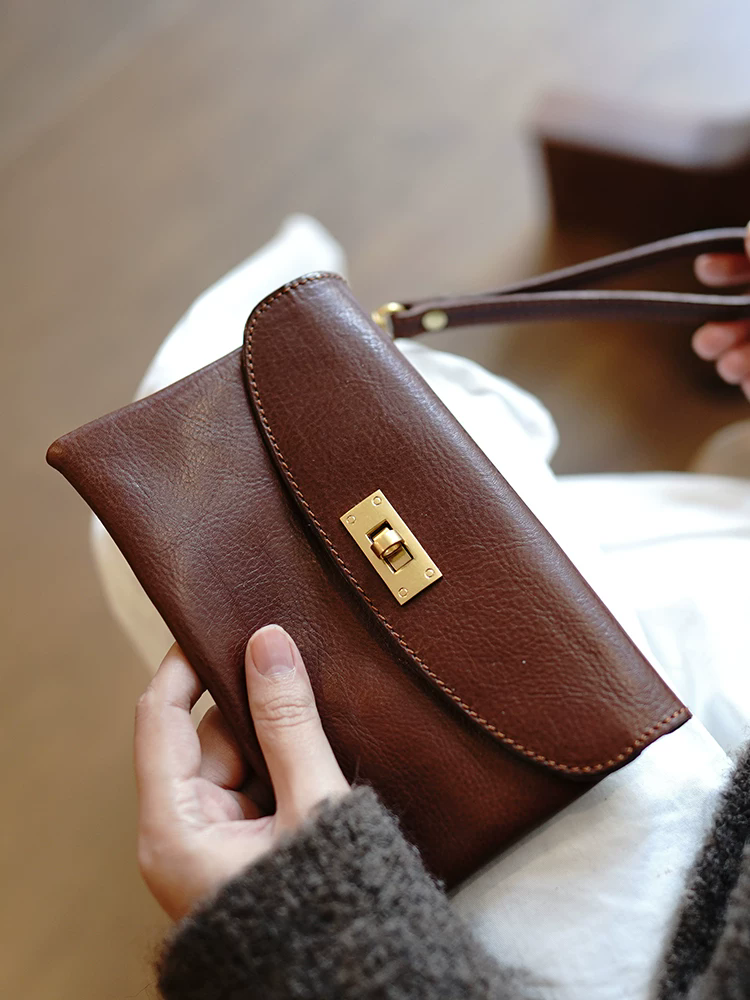 李記 | 原創手工真皮 | 簡約鎖扣ク携帯収納ハ手拿包ls126號