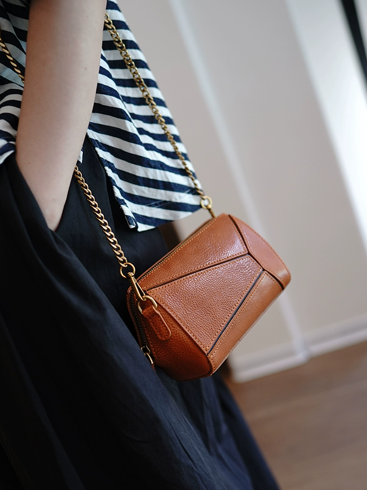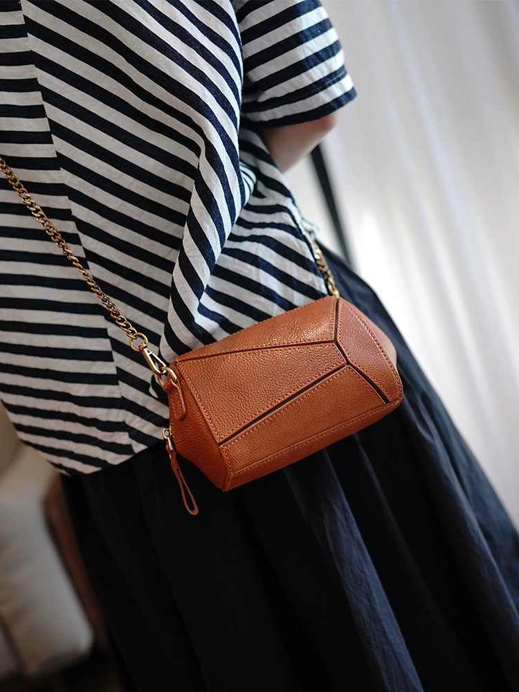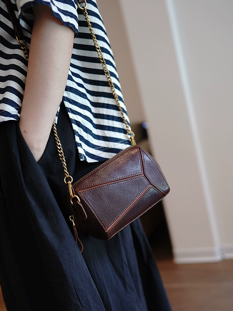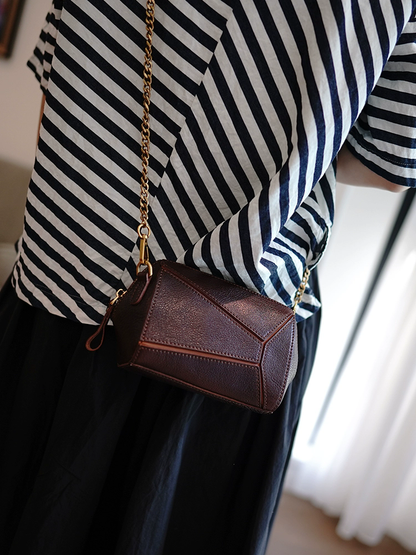 李記 | 原創手工真皮 | 復古幾何拼接の鏈條斜唄包ms192號