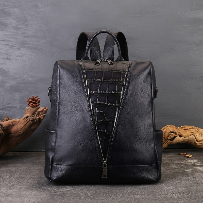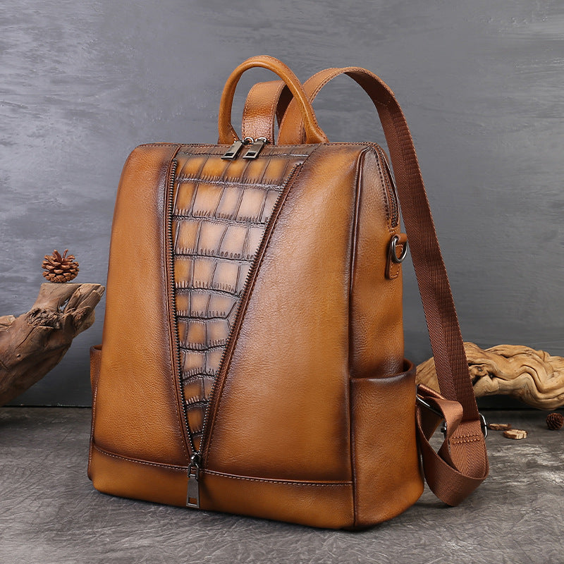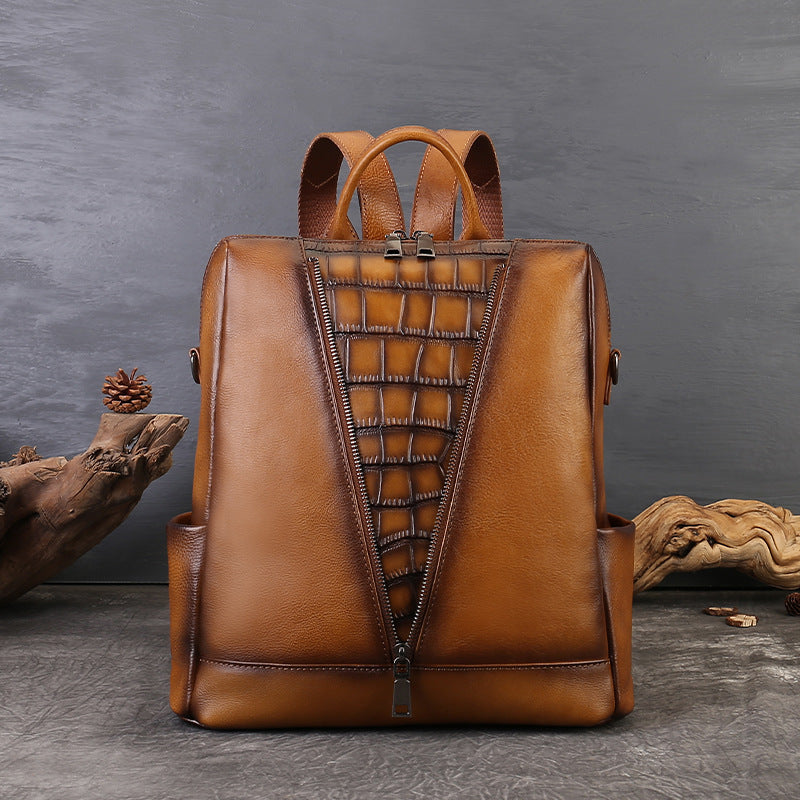 李記 | 原創手工真皮 | 復古植鞣皮の個性壓紋後背包zl8114號