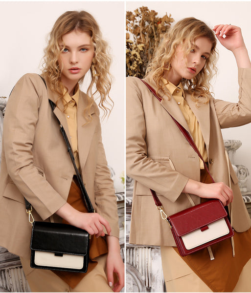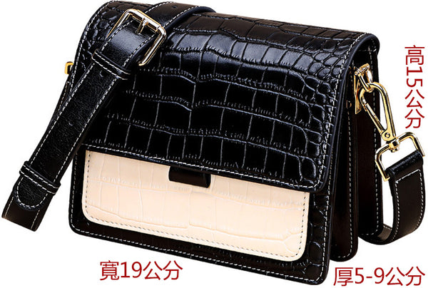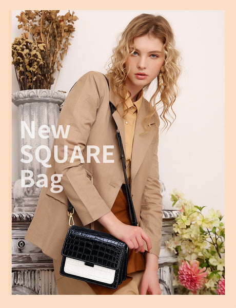 撞色鱷魚紋小方包,時尚簡約,有顏有型。