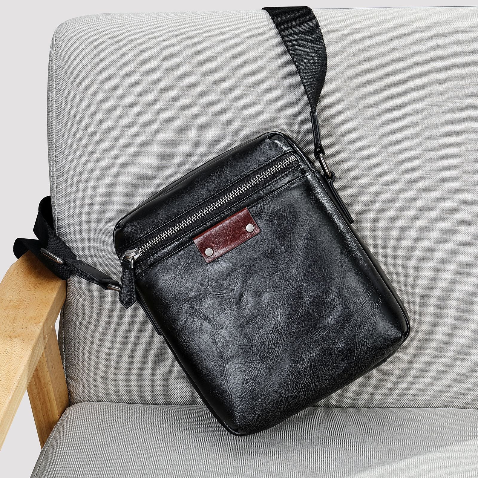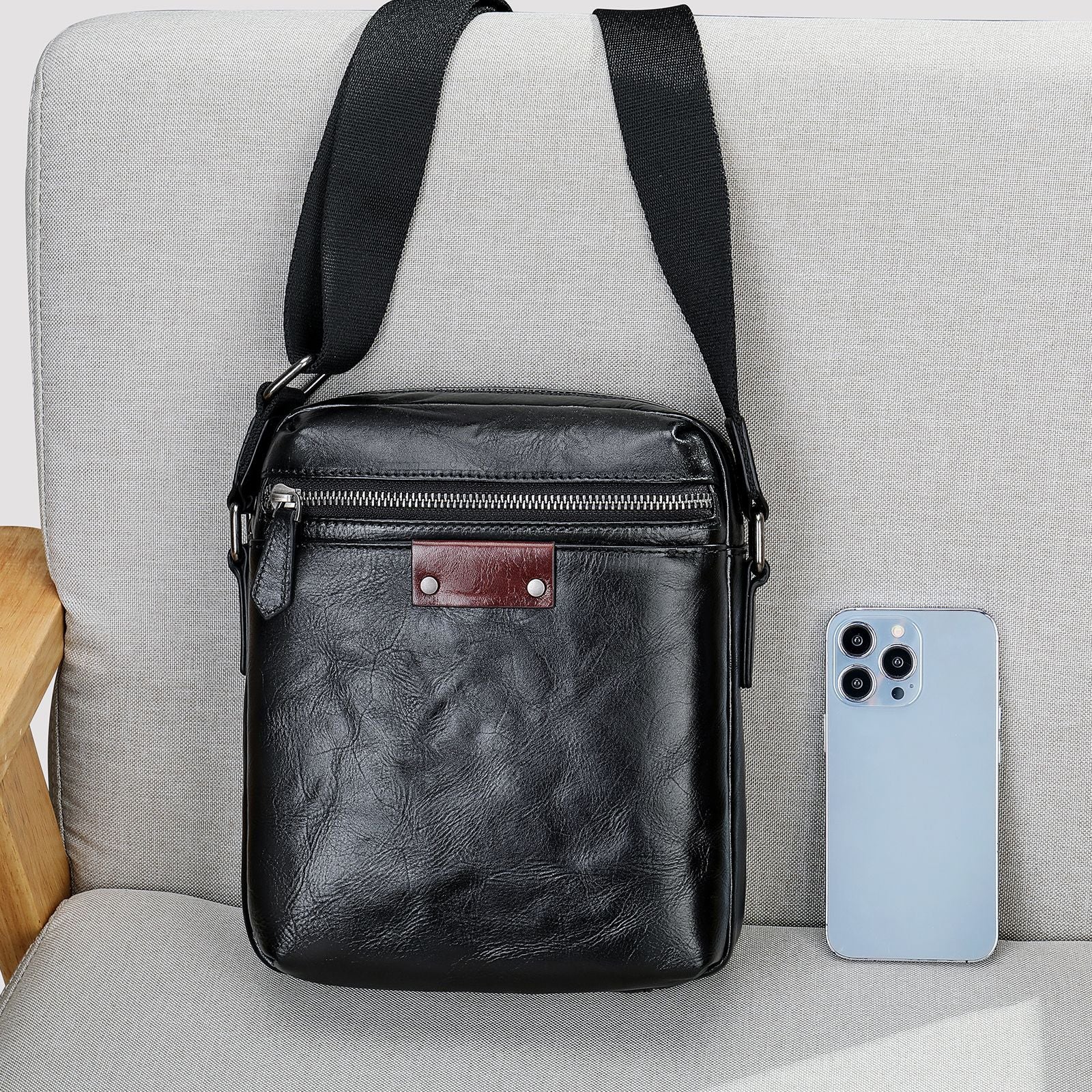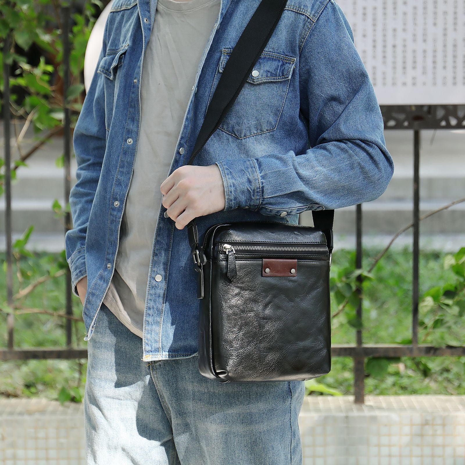 Li Ji |. หนังแท้ของแท้ |. กระเป๋าสะพายแนวตั้งหนังวัวชั้นแรกทำมือหมายเลข 6067
