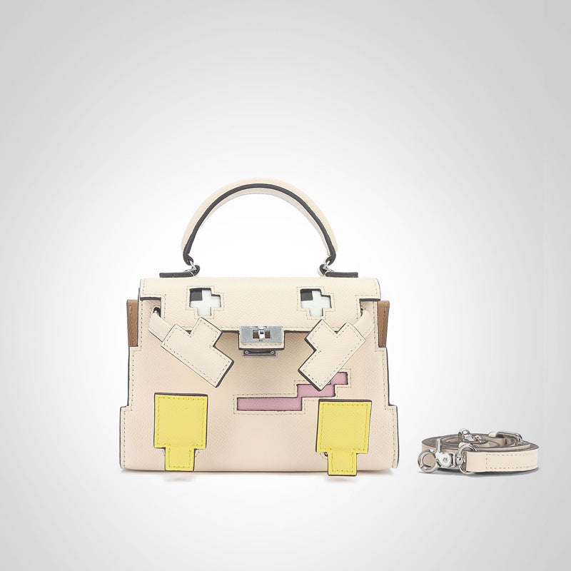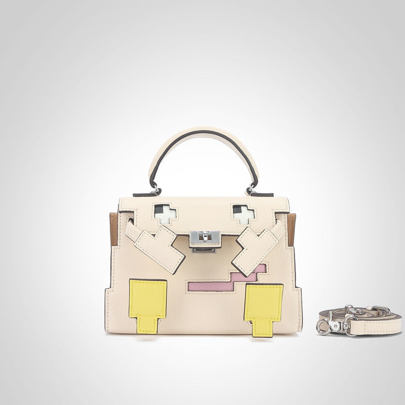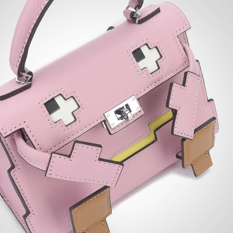 Li Ji |. กระเป๋าหนังแท้แฮนด์เมด |. กระเป๋า Kelly monster สีหวานและตัดกัน No.m635