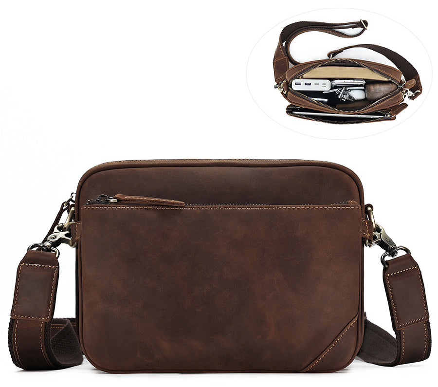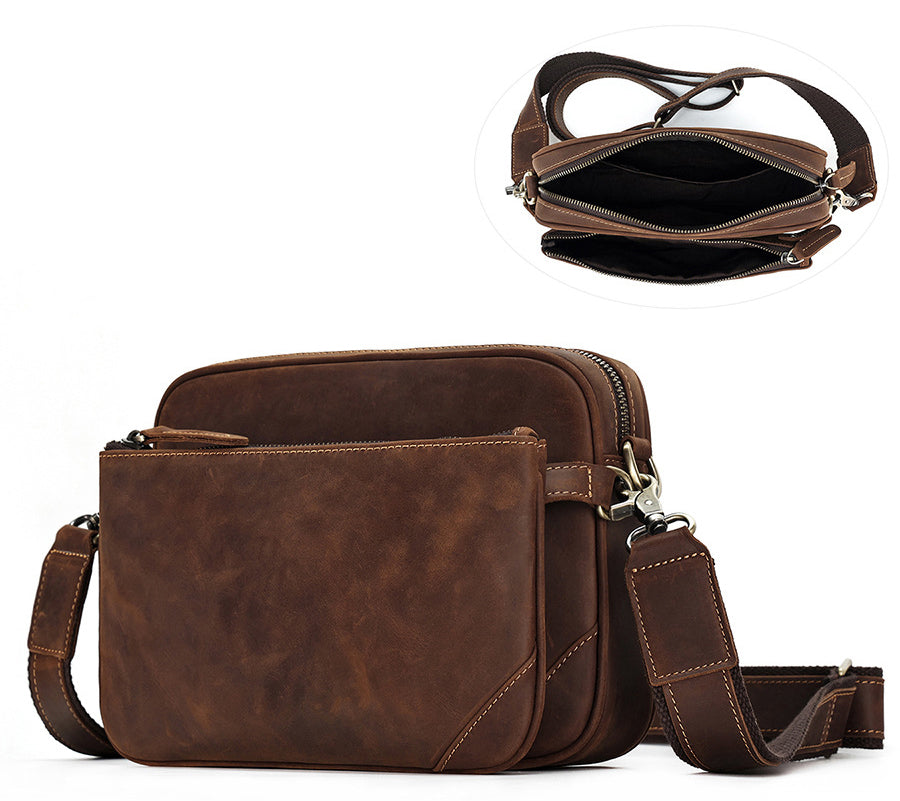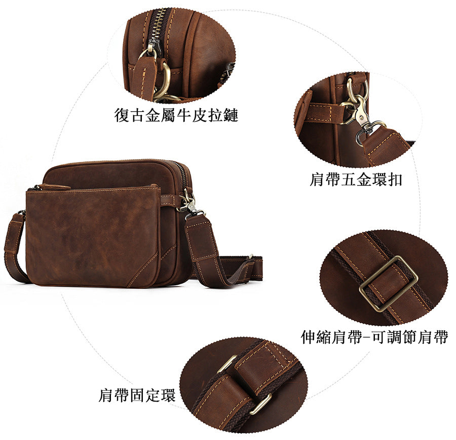 李記 | 原創手工真皮 | 瘋馬皮 二合一設計の斜唄包6736號