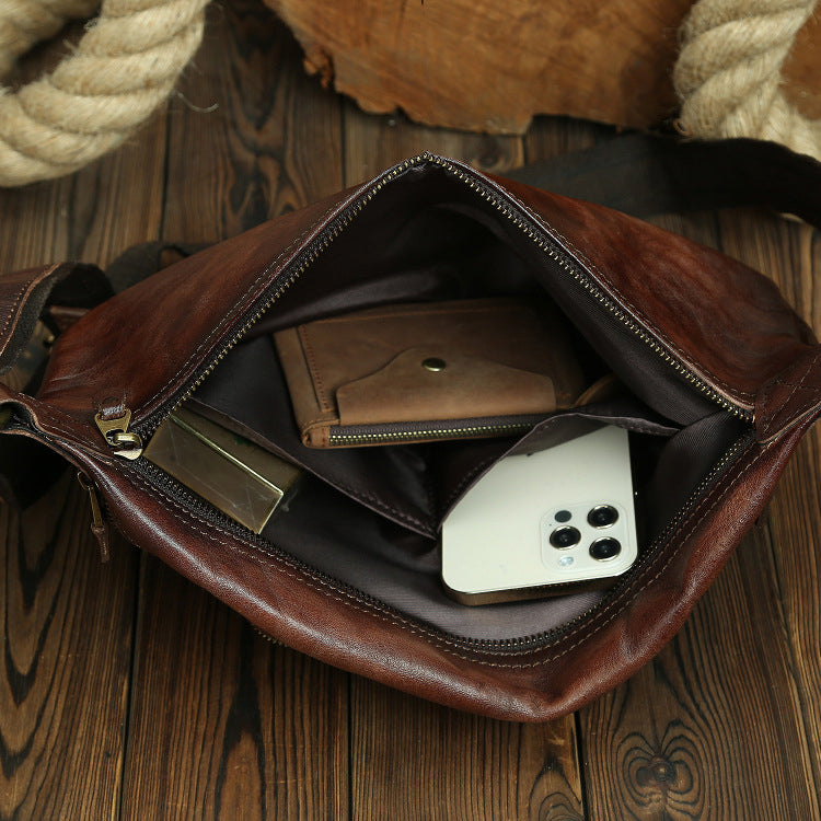 李記 | 原創手工真皮 | 擦色の牛革 楕円形挎包 DJ029號