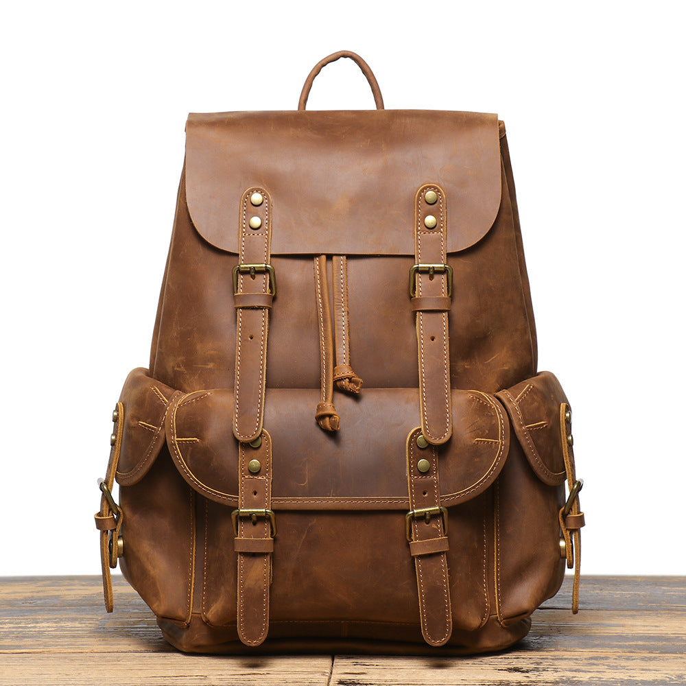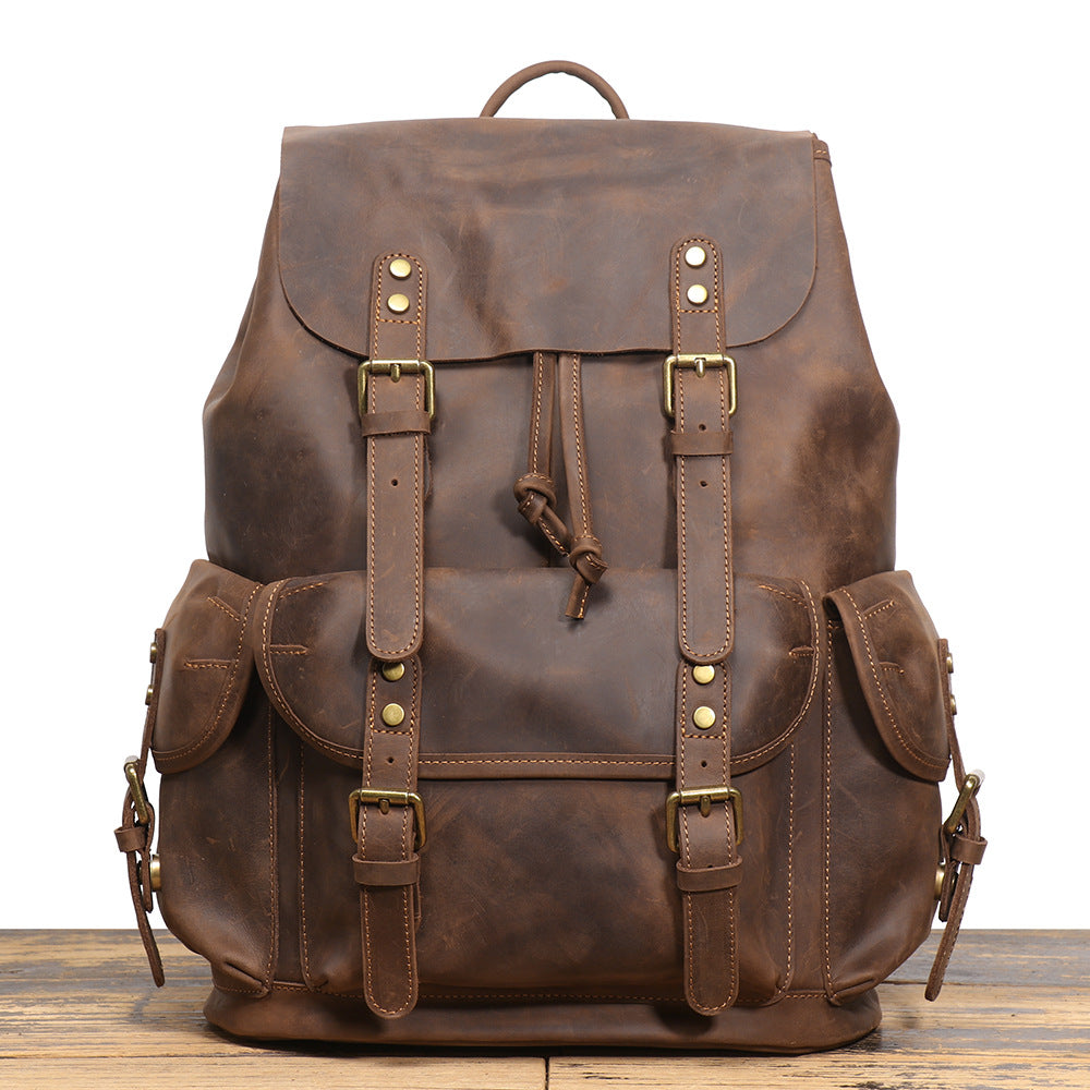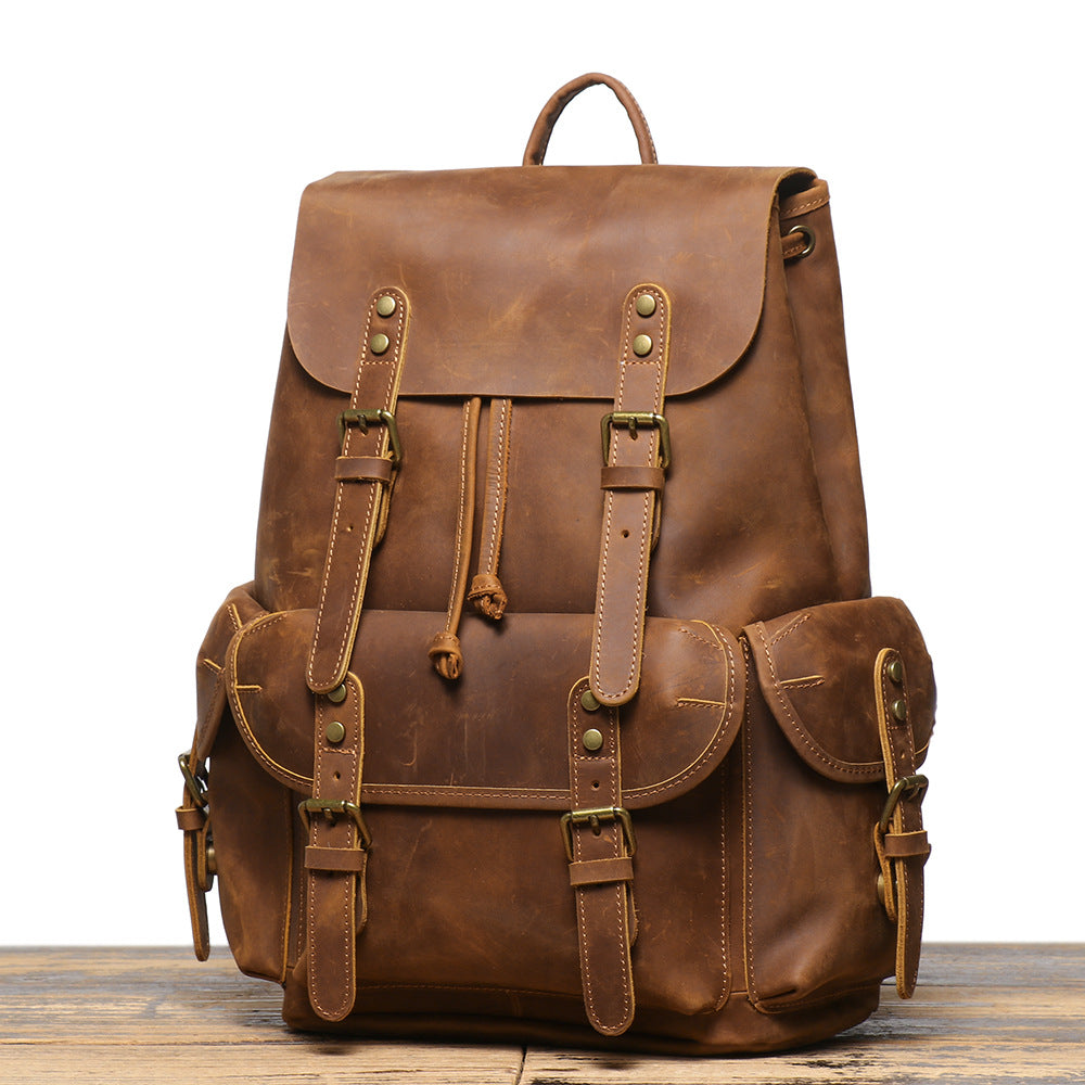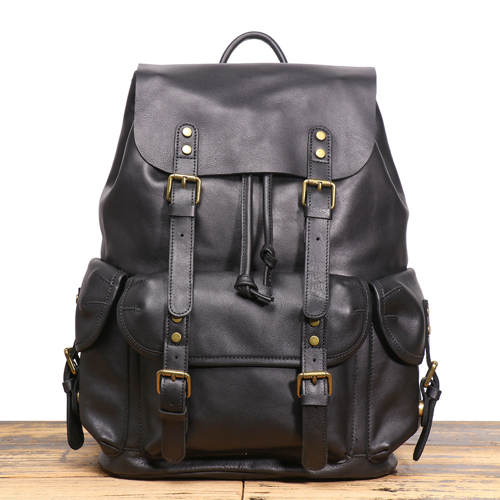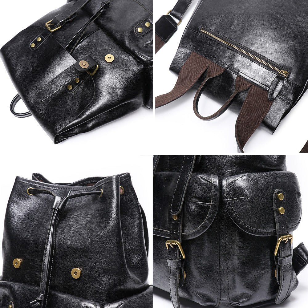 李記 | 原創手工真皮 | 頭層牛皮で出差旅行ハ抽繩後背包LG1939號
