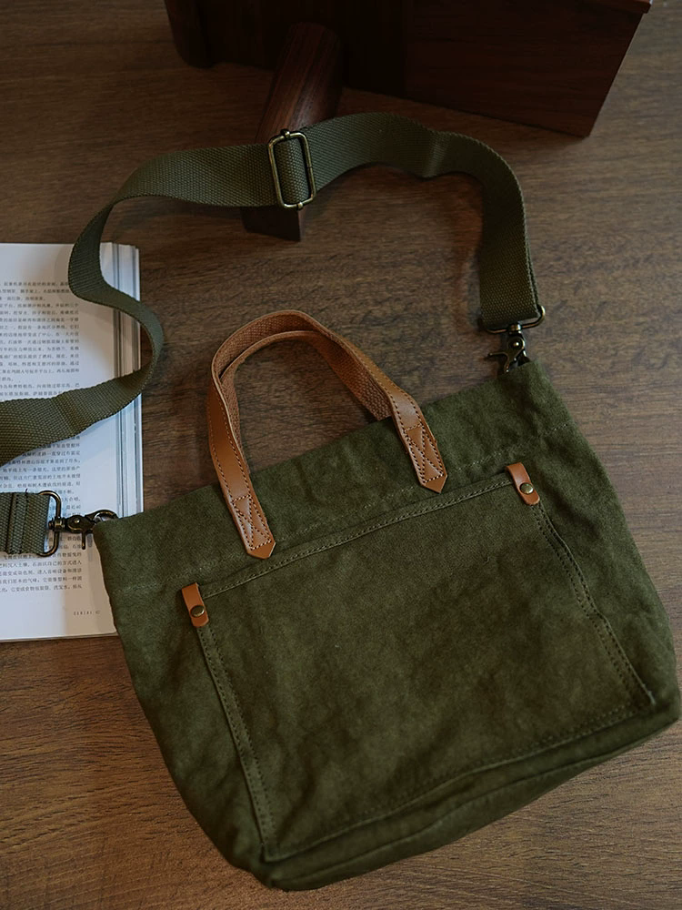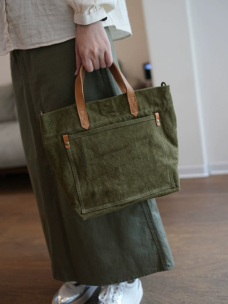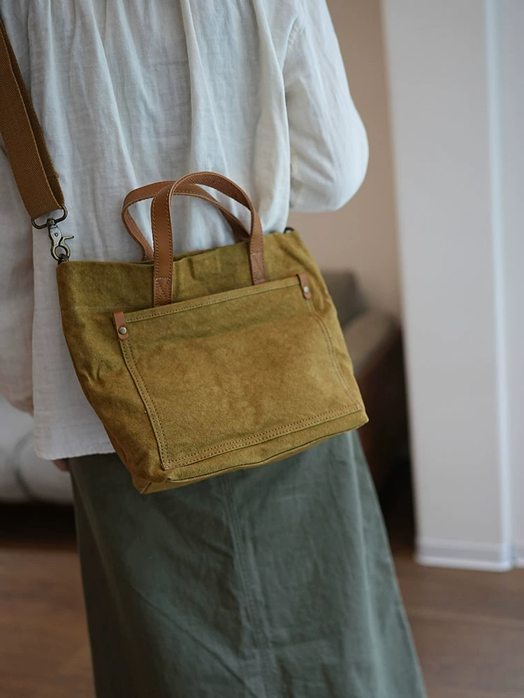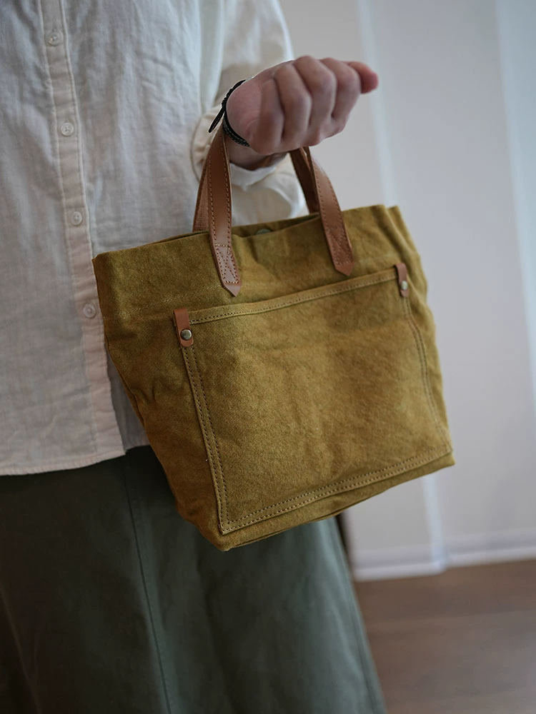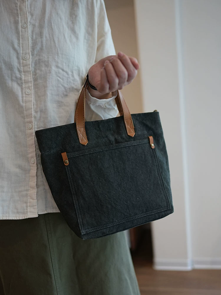 李記 | 原創手工真皮 | 文藝復古い水洗棉麻手提包ms118號