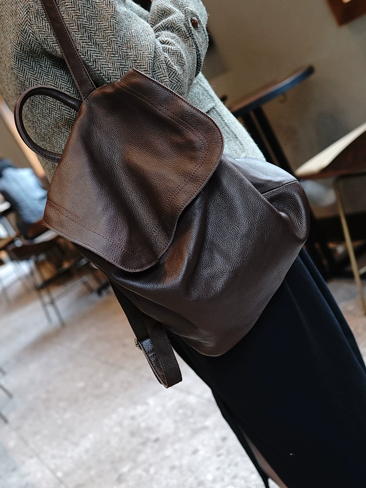 李記 | 原創手工真皮 | 頭層軟牛皮い簡約後背包ms217號
