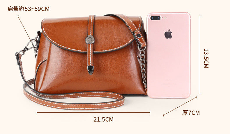 牛皮單肩斜跨包,油蠟牛皮耐髒耐舊. 輕復古文藝范。