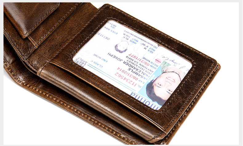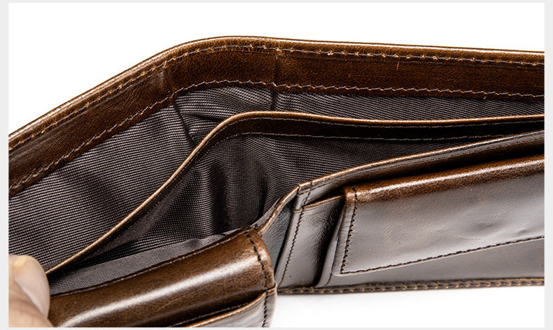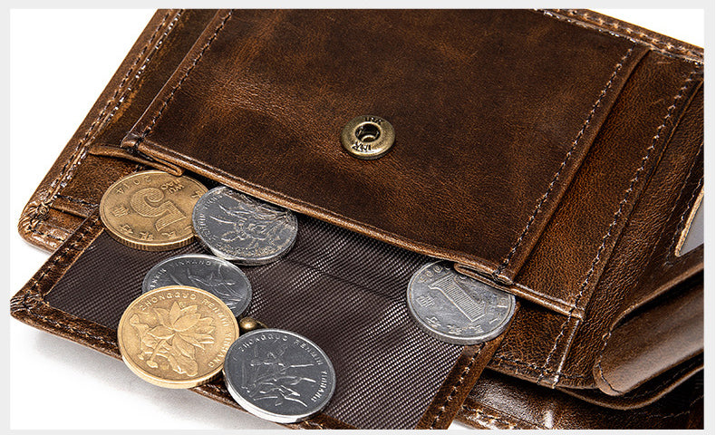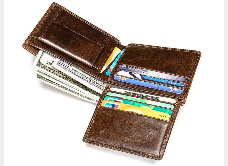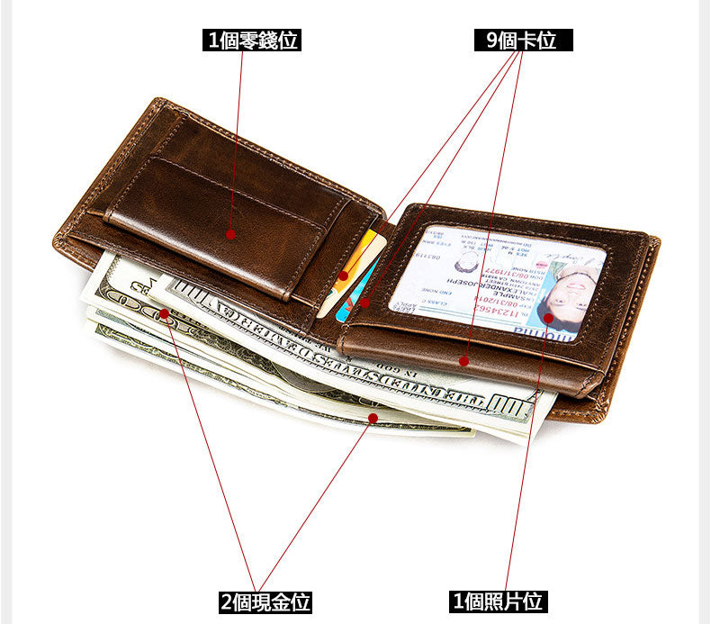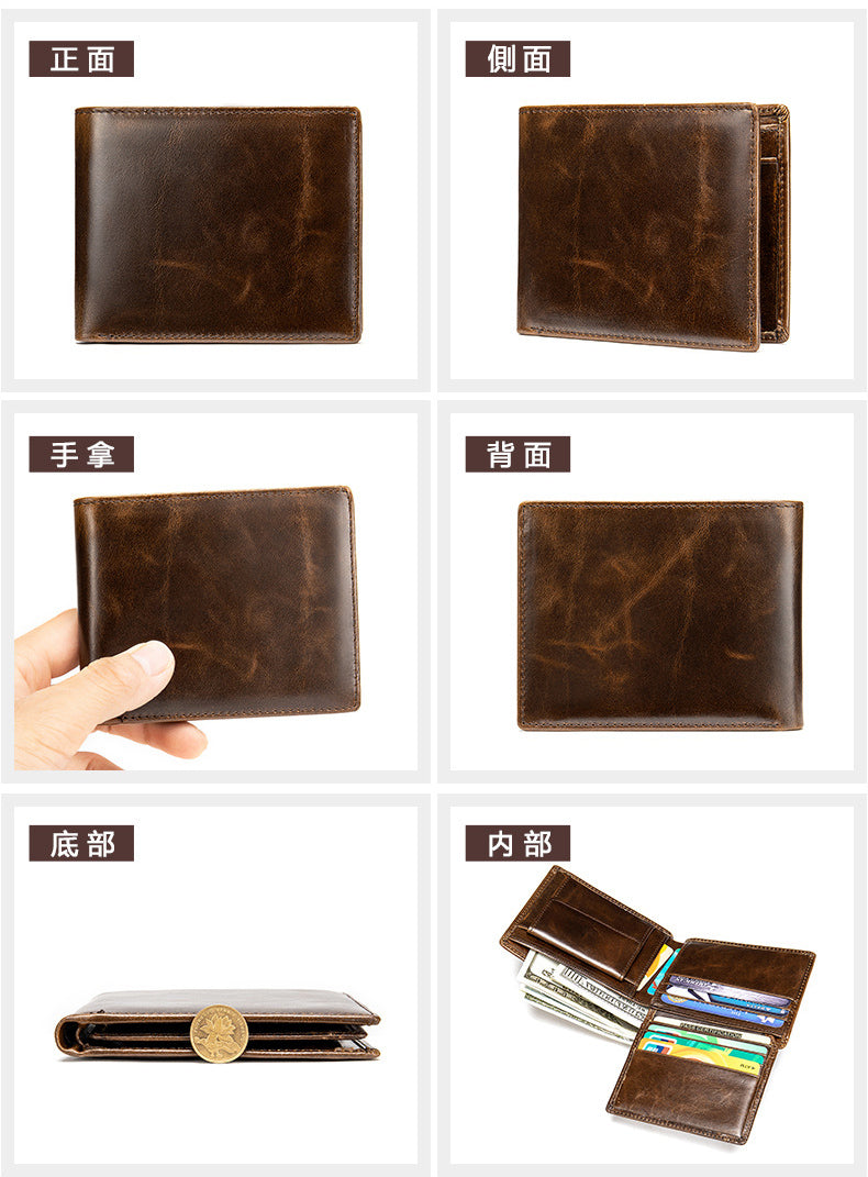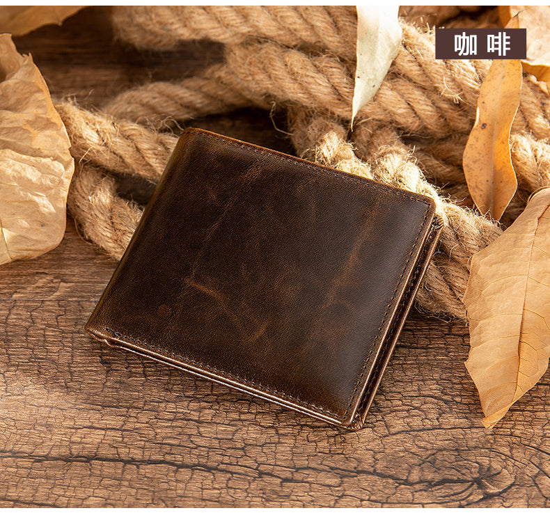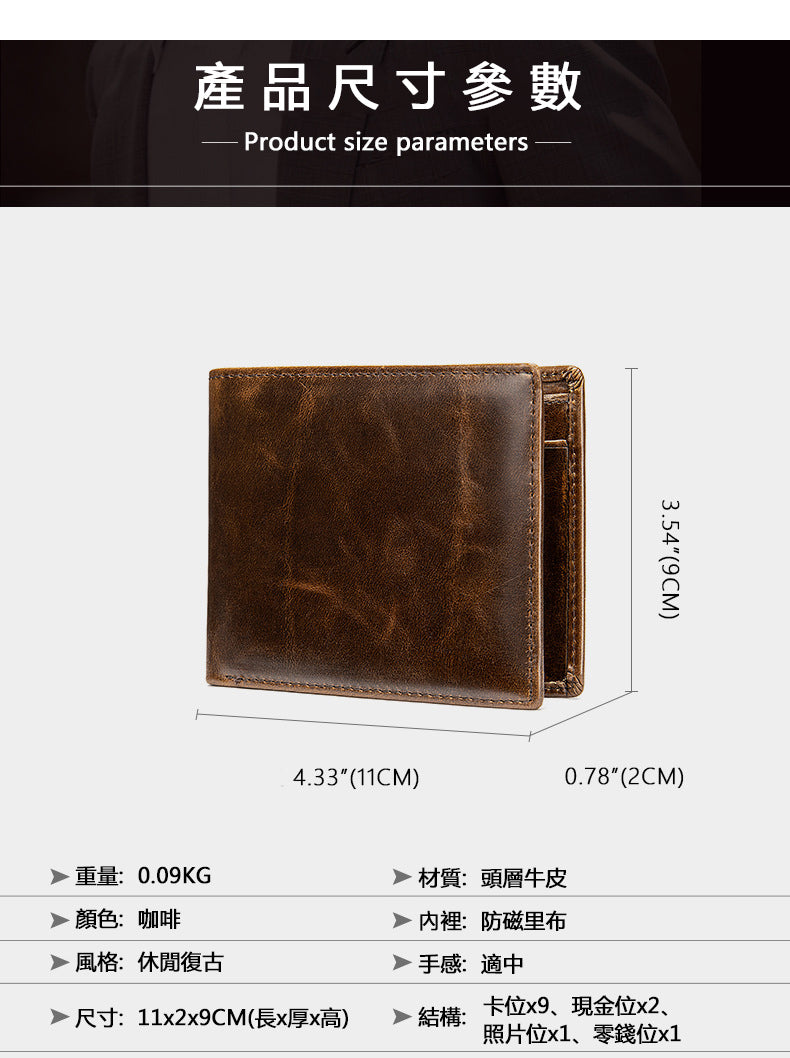 復古短款錢包,真皮耐用,復古休閒,超多卡位,精湛工藝,柔軟表面,頭層牛皮。