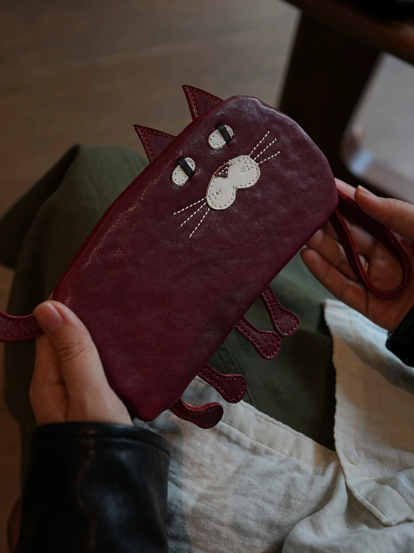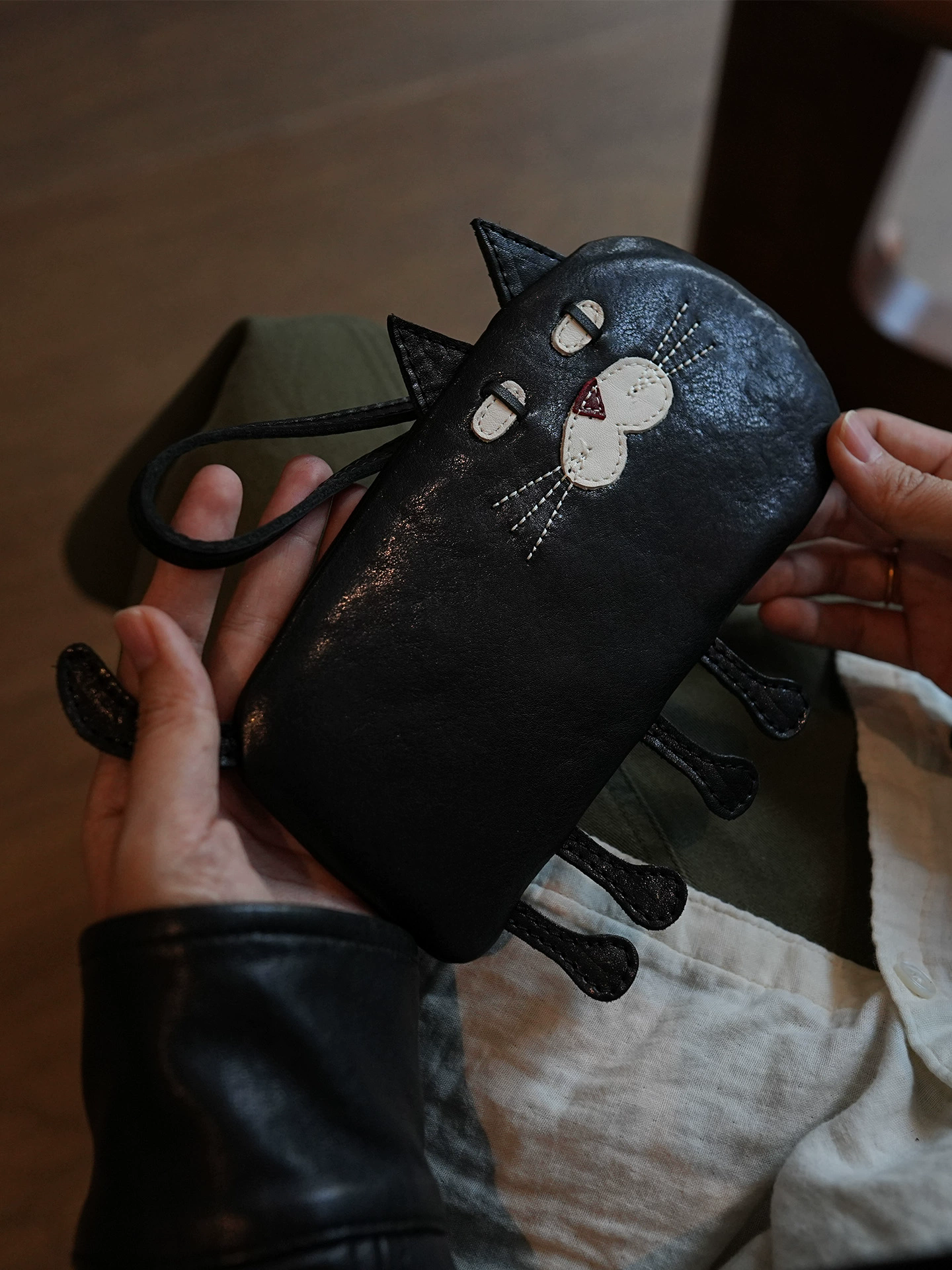 李記 | 原創手工真皮 | 可愛い猫柄・小銭収納長財布13823號