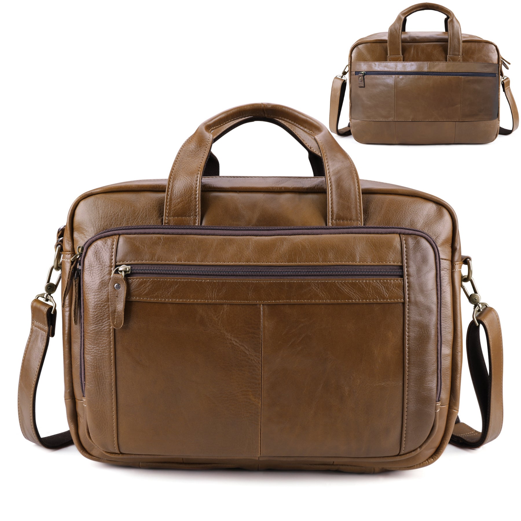 正面拉鍊,頭層牛皮;