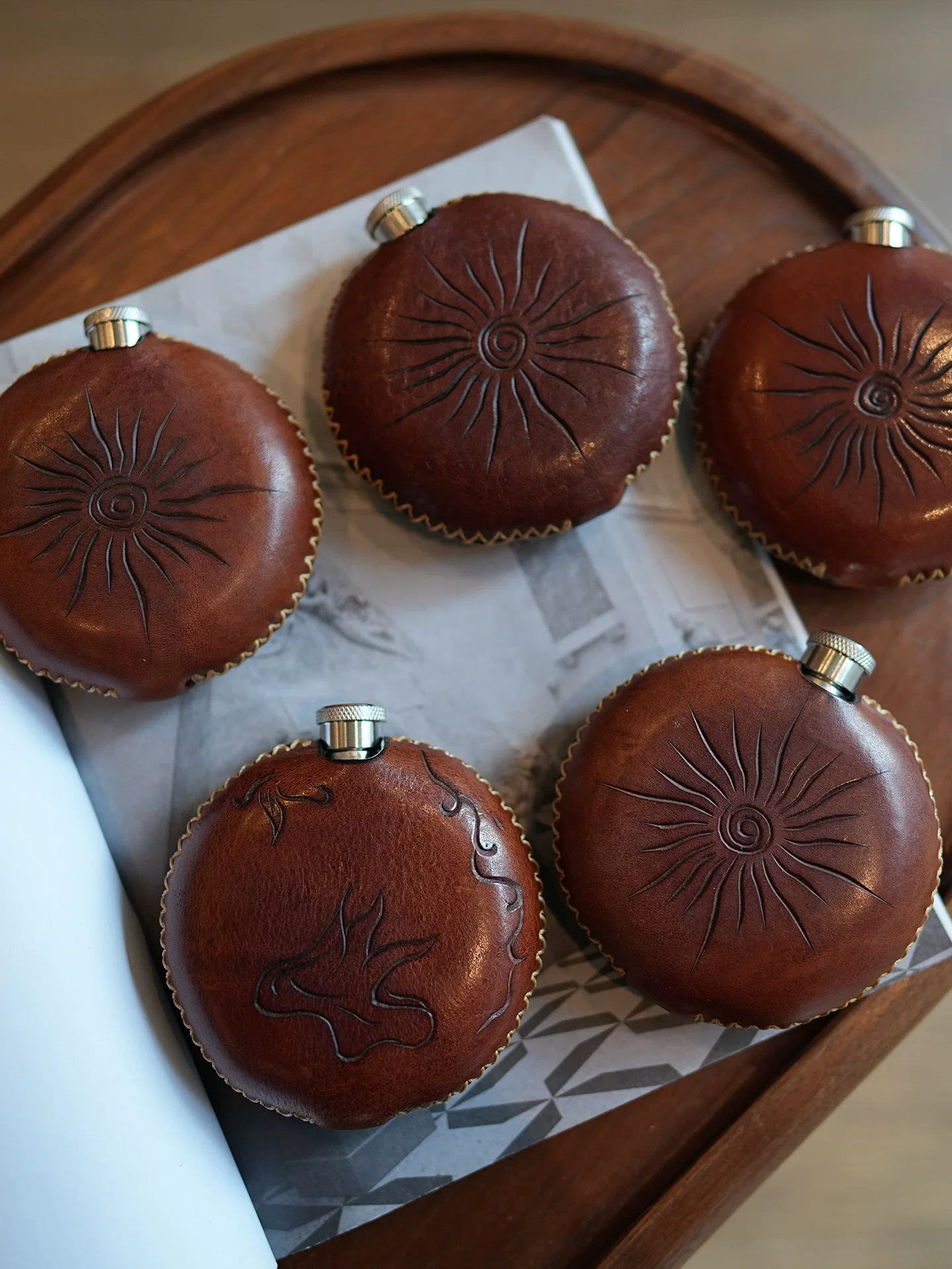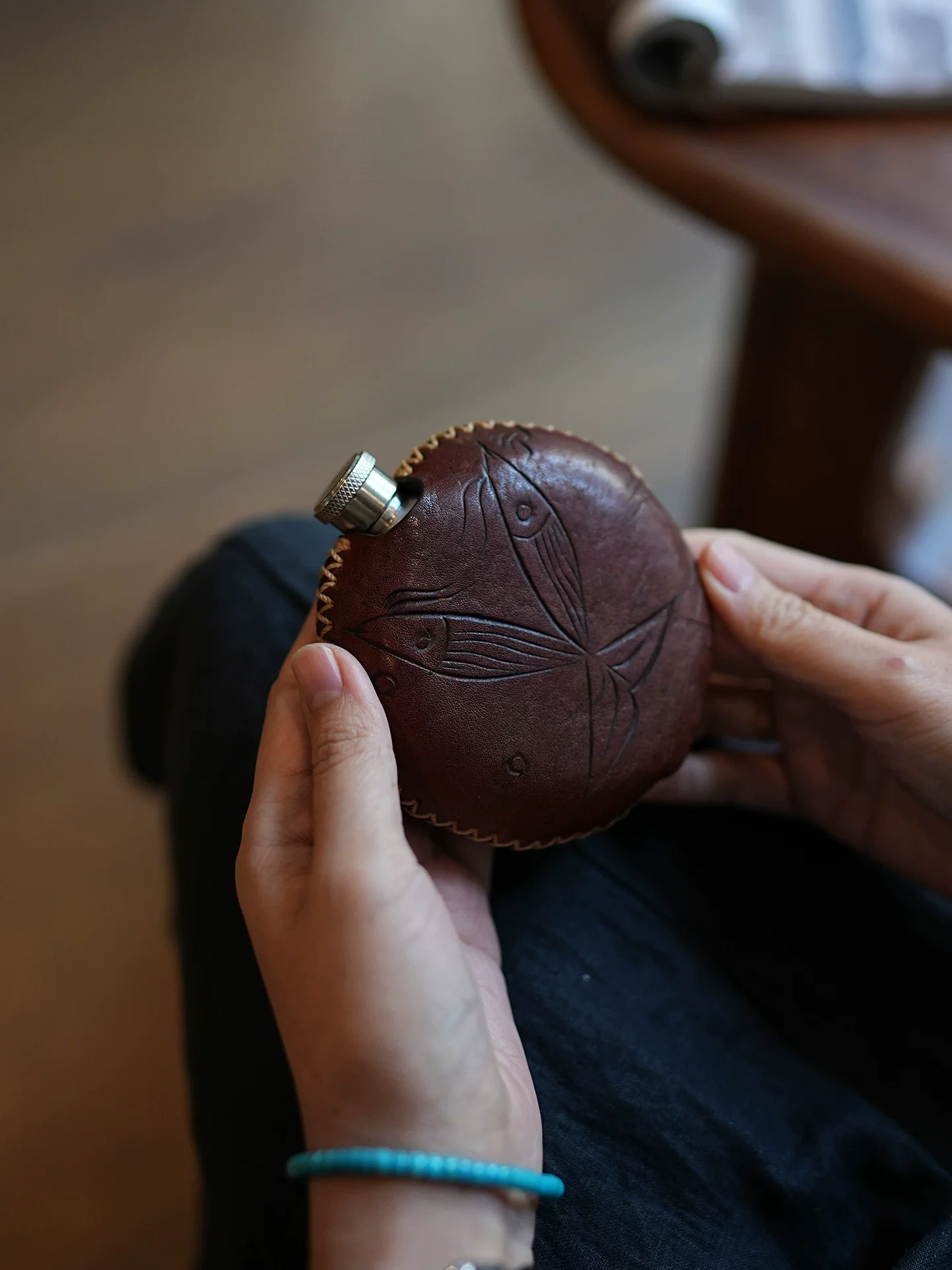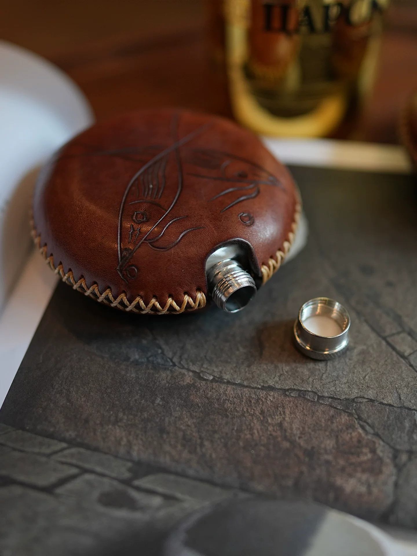 李記 | 原創手工真皮 | 304不銹鋼戶外の隨身便攜小酒壺ls17023號