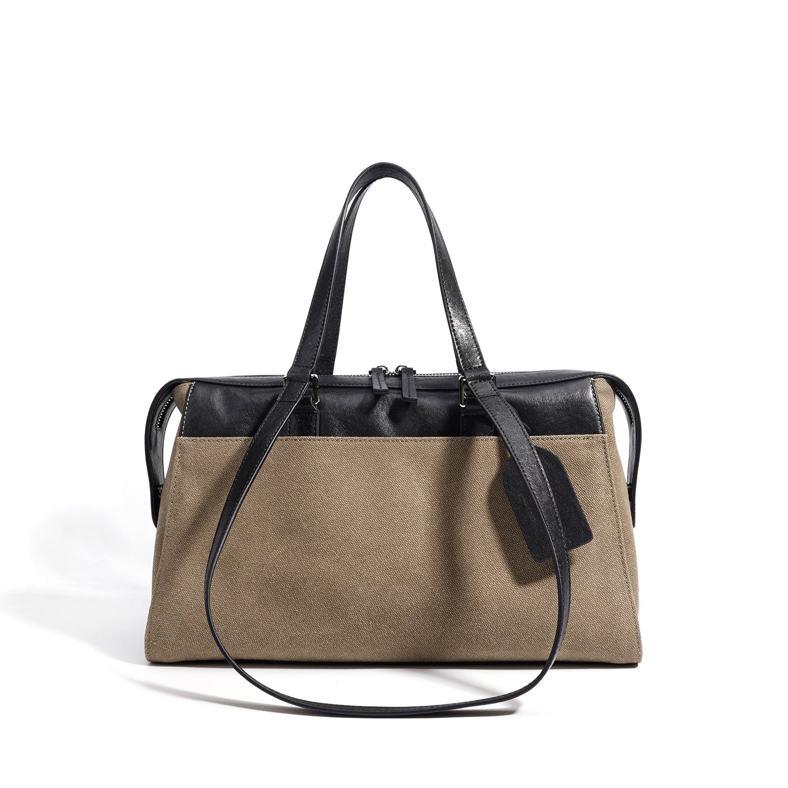 李記 | 原創手工真皮 | 頭層皮配帆布の手提包md8646號