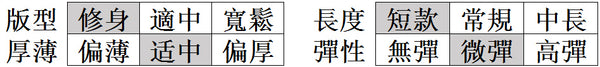 身高(公分),體重(kg);建議尺碼是合身的,如果裡面要穿加厚的衣服,可以選大一碼噢~