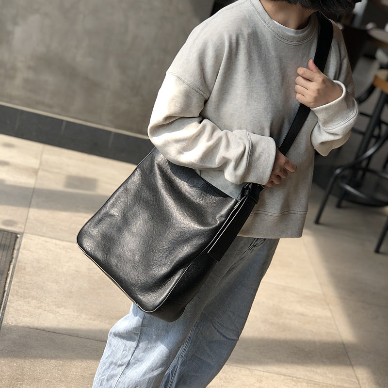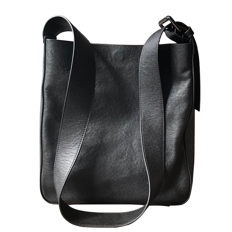 李記 | 原創手工真皮 | 韓版 寬肩帶 復古氣質斜唄水桶包20214號