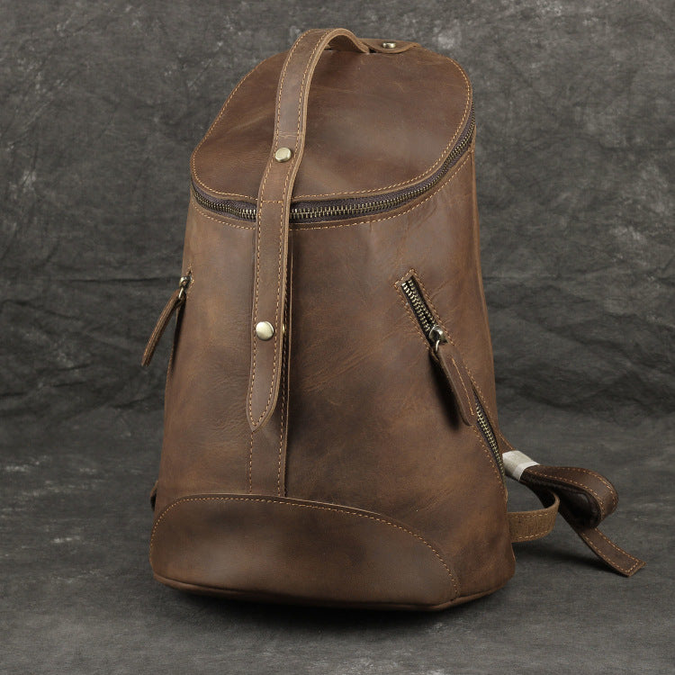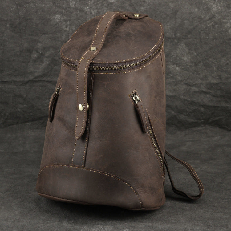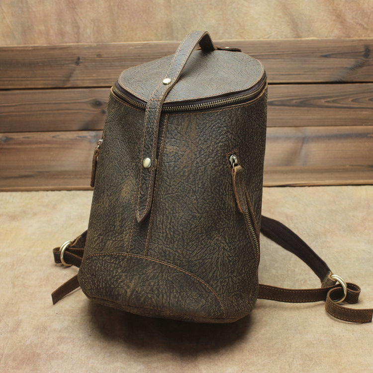 李記 | 原創手工真皮 | 瘋馬皮男女通用背包復古桶包9105號