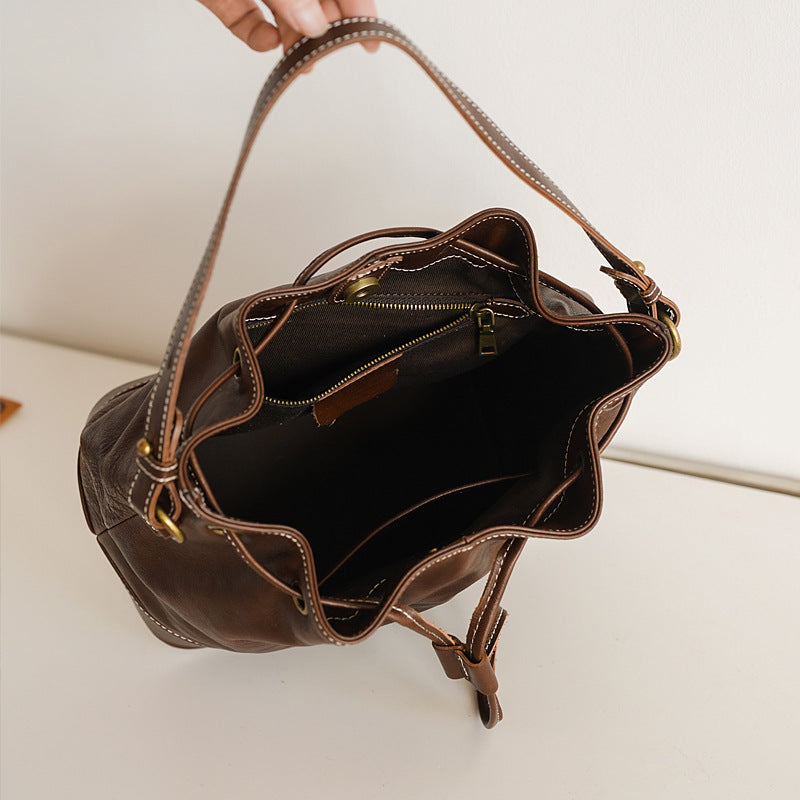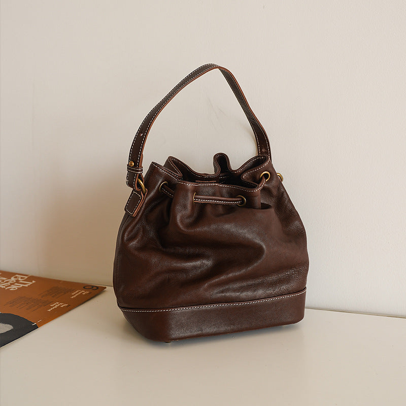 李記 | 原創手工真皮 | 高級感ケツ植鞣皮抽繩手提水桶包920-6號