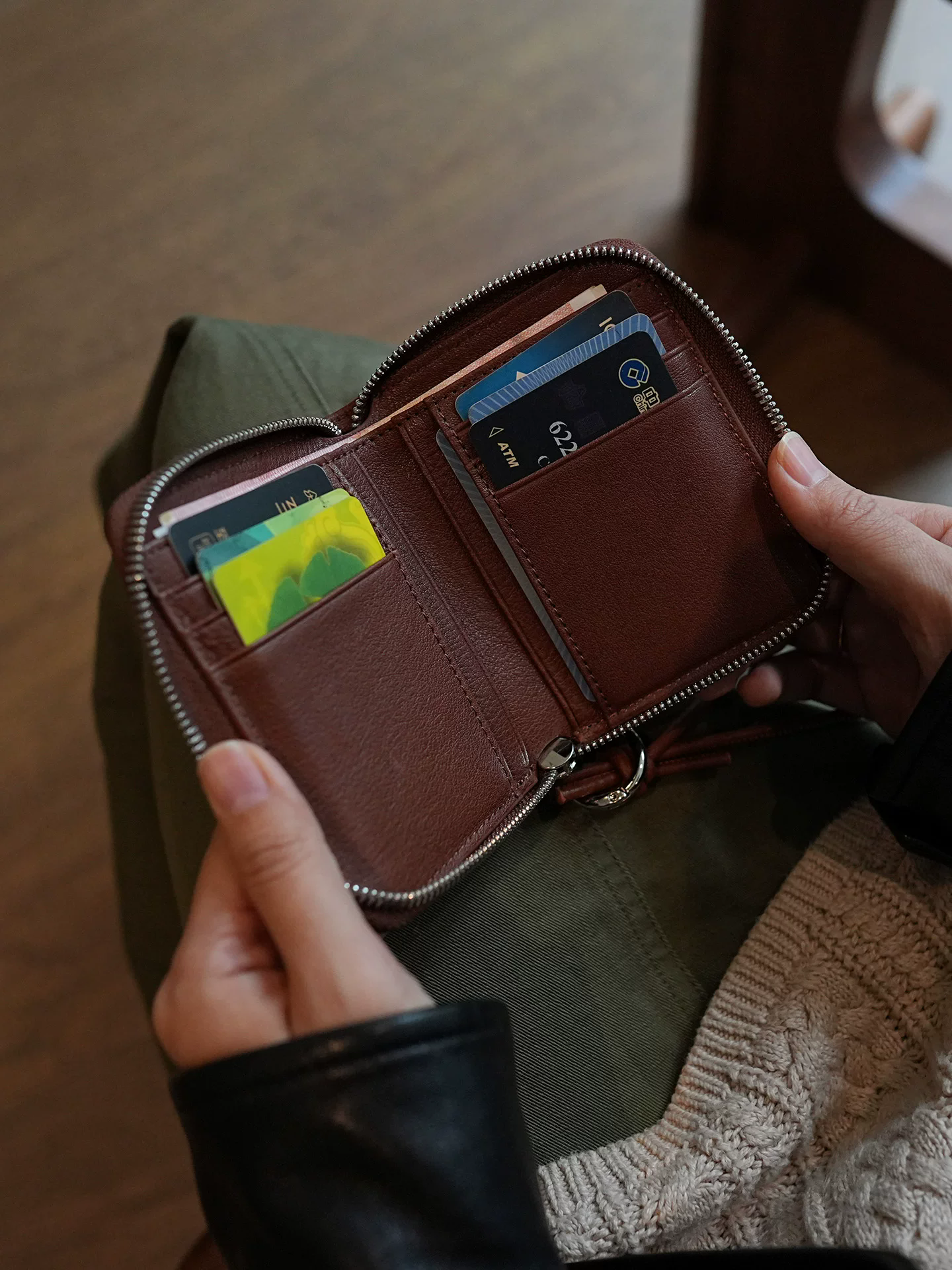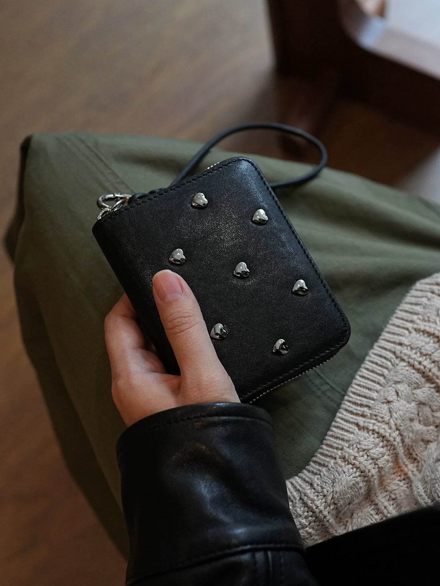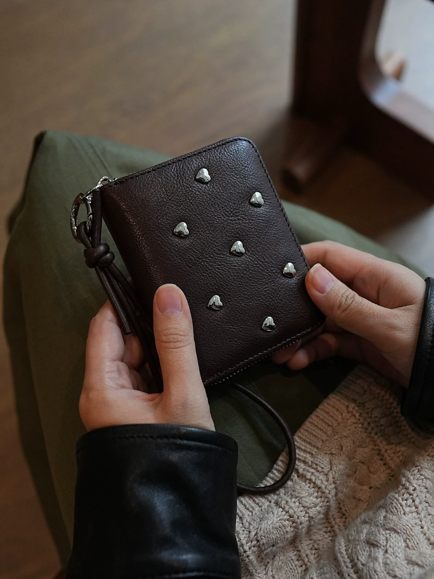 李記 | 原創手工真皮 | 愛心鉚釘の短款兩折拉鍊零錢包ls91號