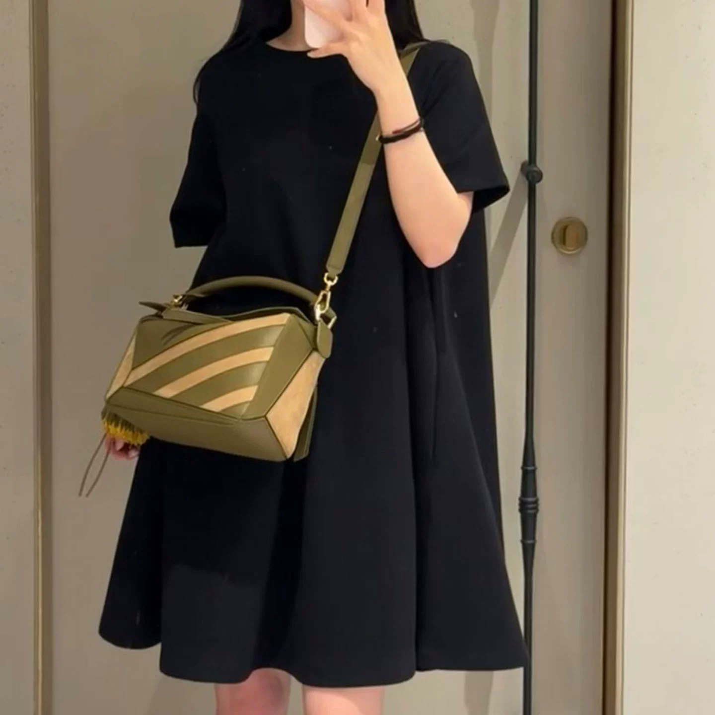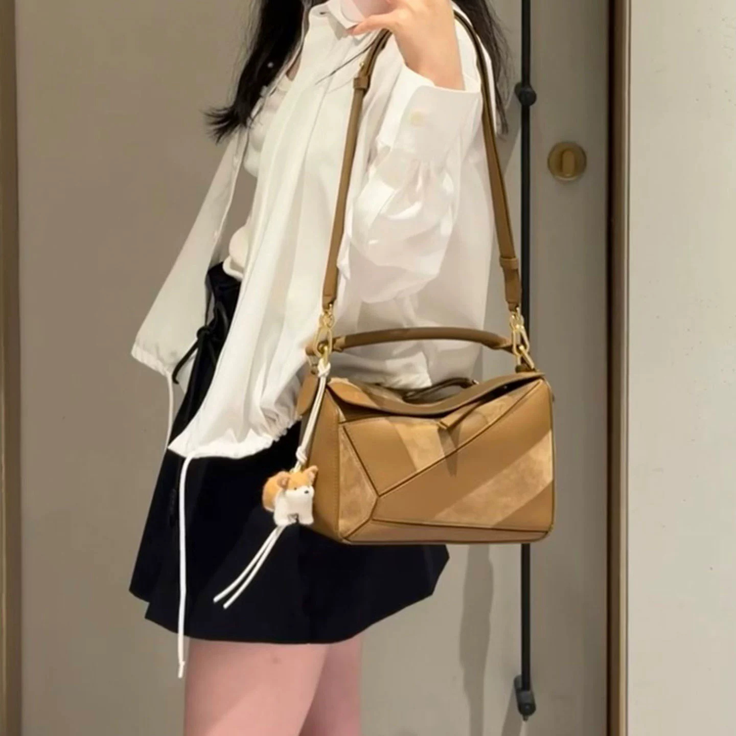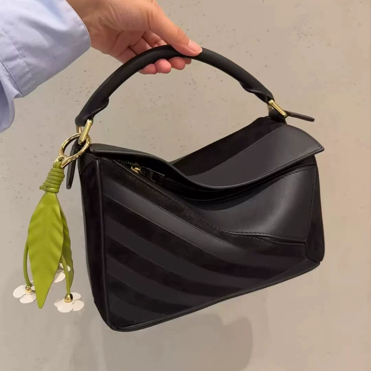 採用牛皮與磨砂皮巧妙拼接,光是上手一摸,就能感受到如忌廉般絲滑的觸感,細膩且奢華。而且在光線下,包包還隱隱閃爍著迷人的光澤,高級感瞬間拉滿。