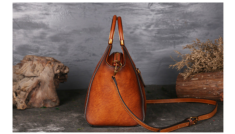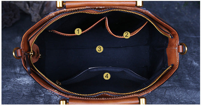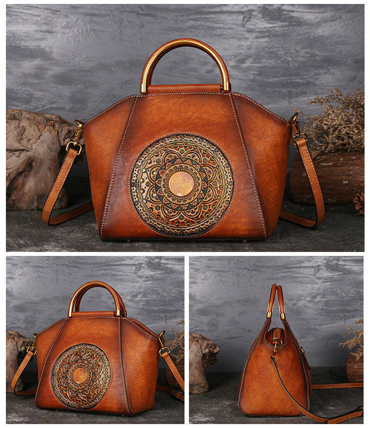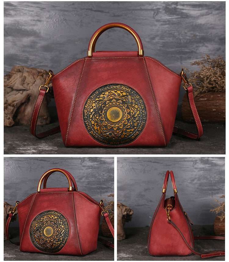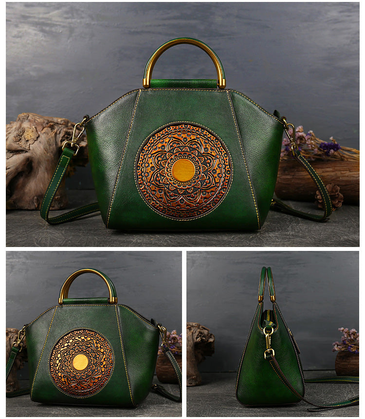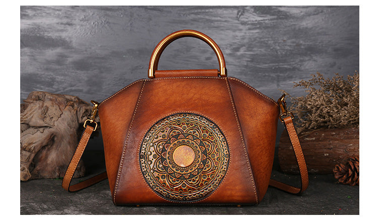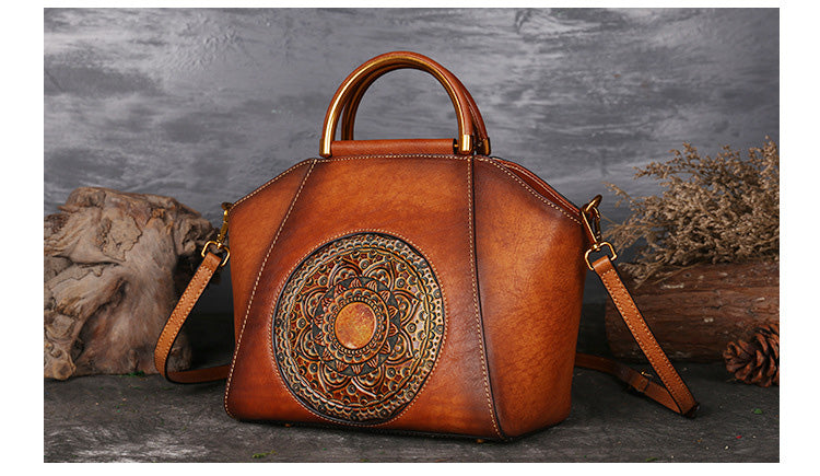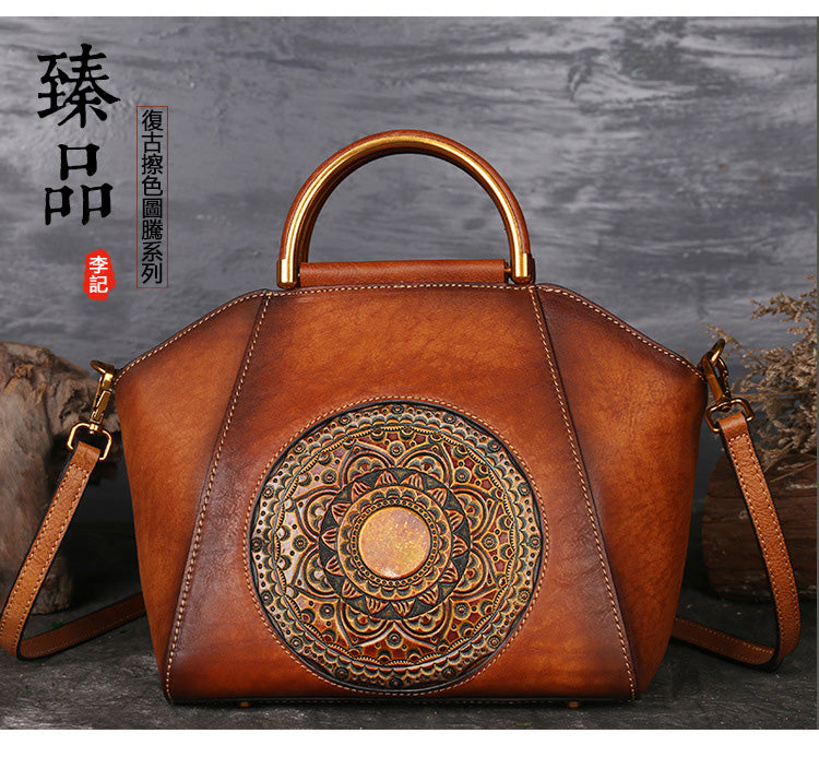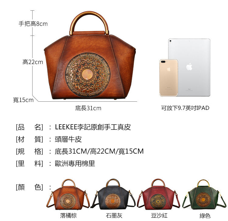 李記 | 原創真皮手工 | 女士手提壓花貝殼包 S1156號