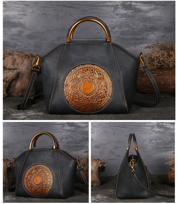 頭層牛皮搭配復古壓花設計,高雅時尚,而且手感舒適細膩,整個包身細節滿滿,人強烈的與眾不同的時尚感,經過專業工匠的精湛工藝加工, 呈現出優雅精品女包。