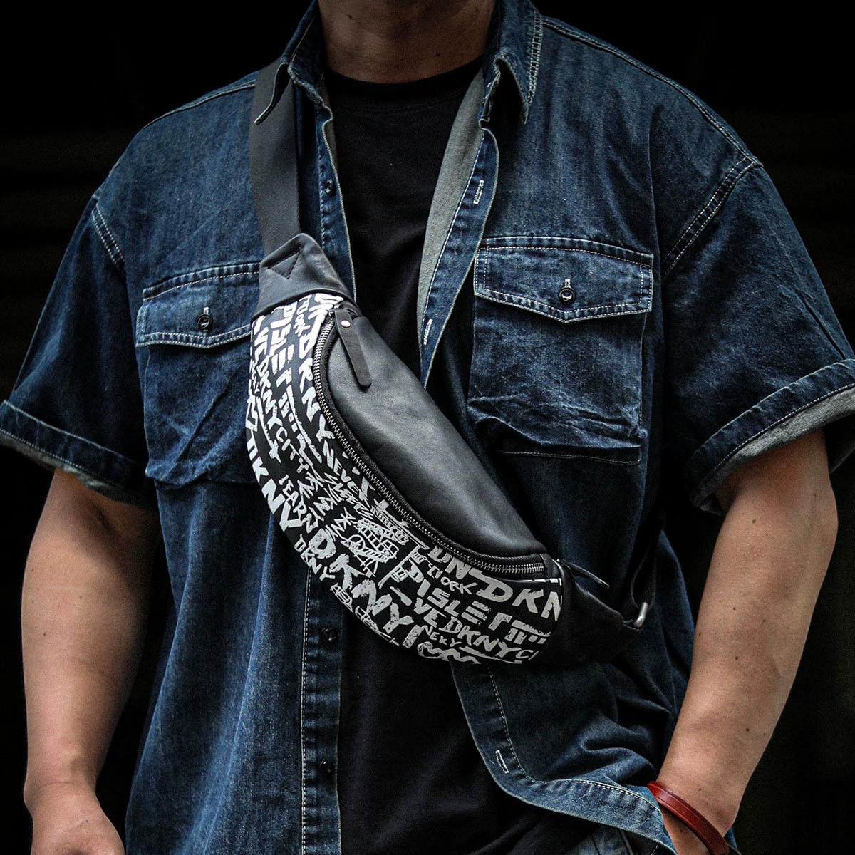 塗鴉胸包褪去了“土頭土腦”的外殼,頂上了“潮包”、“時髦單品”的頭銜,火熱出爐,黑白經典搭配,出彩的同時又不會太出挑,怎麼背都减齡百搭,皮料自帶天然質感、微光色澤,用料扎實,做工出眾,縱然是個粗枝大葉的人,也可輕而易舉營造出率性清爽的風格,新時代男士高階背包,要有趣的靈魂也要有時尚的亮點