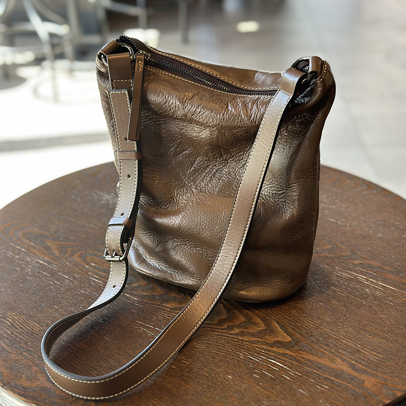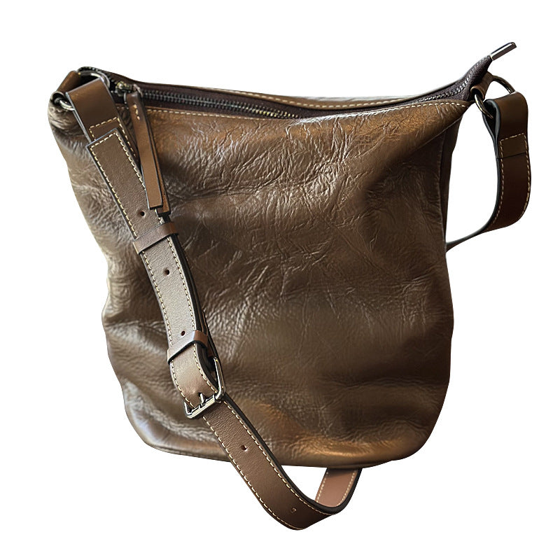 李記 | 原創手工真皮 | 手抓み紋様頭層牛革バッグ水桶包23032號
