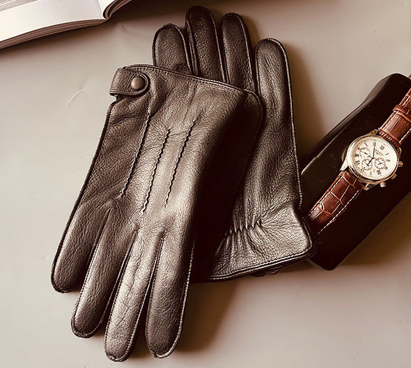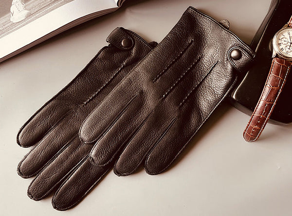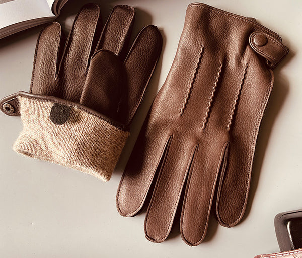 李記 | 原創手工真皮 | 進口鹿皮ミ冬季保暖羊絨裏襯行駛手套EM012號